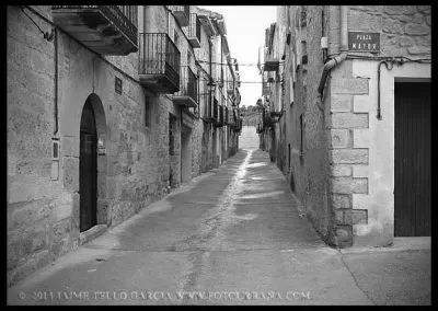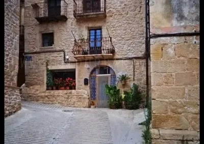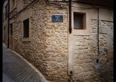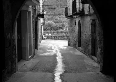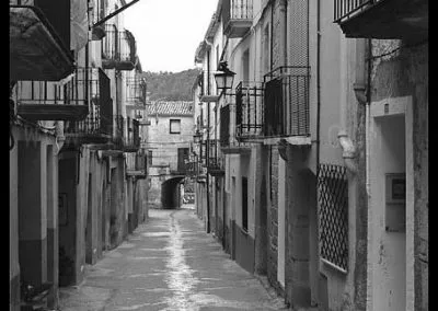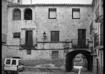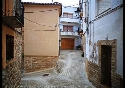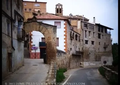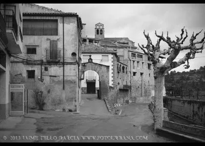 Pocas comarcas habrá en España, incluso en Europa, de una belleza tan rotunda y constante como es esta turolense del Matarraña. Pueblos medievales, frescos valles, cultivos, sierras exuberantes, paisajes de piedra, de almendro y de olivo, de historia bañada por la luz cálida del cercano Mediterráneo. Arens de Lledó se sitúa al borde de la comarca y de las tierras aragonesas, al borde del río Algars, saludando en la cercanía a la Terra Alta catalana, a Horta y Caseres y a las Roques de Benet. Arens de Lledó es uno de los pueblos más pequeños de esta tierra, y no por ello pierde un ápice de su irresistible encanto medieval, de su arquitectura sólida y noble. En lo más alto del casco urbano se yergue la Iglesia gótica de la Asunción, del siglo XIV, el elemento más destacado del patrimonio local, y desde su ubicación privilegiada vigila el pequeño valle del Algars y las vecinas tierras catalanas. A sus pies se abre el mar de tejas que cae con fuerza hasta el punto más bajo, la plazuela en la que se encuentra el ayuntamiento de esta villa que lo es desde 1785, y de la que parten las calles más importantes de Arens. Grandes casas, algunas blasonadas, de portales adovelados y ventanas historiadas, y algunos pasadizos y callejas, restos de un pasado medieval que aún se siente en el pueblo. Aunque de vez en cuando se cuela alguna casa fuera de lugar que alguien debió censurar en su momento. En Arens sólo encontré una casa horrenda en el recinto histórico, aunque muy visible, una casa blanca de feas terrazas modernas que alguien debiera expropiar y remozar o derribar para terminar con el desaguisado.