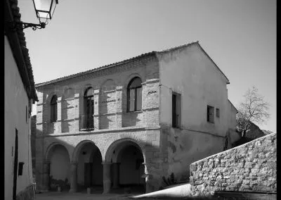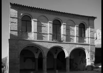 Fue una experiencia extraña que me hizo sentir como si las calles y los edificios del pueblo estuvieran ahí a mi disposición, como un decorado inerte ofrecido a mi curiosidad. Lo cierto es que sentí algo de miedo, el mismo miedo que a veces me impide transitar por un bosque o un campo cerrado. Soledad, aislamiento y vulnerabilidad. Pero tampoco es un miedo paralizante, por lo que sigo con mi paseo. Cruzo el Manubles para lograr una panorámica excepcional de Berdejo y en el horizonte se recorta su castillo, cuya construcción se remonta al siglo XII, cuando se fortificó toda la línea. Merece la pena el esfuerzo de retroceder y acercarse hasta lo más alto, con precaución dado el estado precario del conjunto, y desde allí observar los buitres y el paisaje emocionante del recodo que forma el río y los campos de labor que han aprovechado la fértil llanura de inundación. A los pies de la fortaleza aparece el conjunto del Ayuntamiento, notable edificio renacentista muy bien restaurado, con cuerpos de ladrillo que descansan en sólidas columnas, y la Iglesia de San Millán, colgada sobre una roca y de trazas románicas, del siglo XIII, muy transformada en tiempo posterior. San Millán, que según cuentan nació en Torrelapaja, perteneciente entonces a la jurisdicción de Berdejo, por lo que los de aquí los reclaman como el berdejano más ilustre. Y por lo demás, un conjunto de casas bien arregladas para fines de semana y vacaciones, cuyo estado de conservación en absoluto remite al despoblamiento total del que antes hablaba. Una sorpresa.