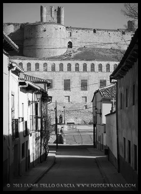 Perdido andaba yo por tierras sorianas, camino de El Burgo creo recordar y como siempre, por el camino menos directo para disfrutar más de la soledad de paisajes poco frecuentados. Y sin esperarlo me topé con el perfil de Berlanga de Duero, uno de los paisajes urbanos más espectaculares de España. Menuda sorpresa. Un castillo de grandes cubos circulares. Una muralla, a los pies del Castillo, de lienzos casi intactos y resonancias legendarias. Una fachada que es eso, pura fachada llena del aire de un viejo palacioausente, el de los Tovar, arruinado en la Guerra de la Independencia. Una fantástica Plaza Mayor porticada, castellana. Una Colegiata de dimensiones casi catedralicias. Una villa de enrevesado casco urbano medieval salpicado de palacios y de una arquitectura popular extraordinaria. Berlanga es un asentamiento humano milenario, que cobró un papel relevante durante la dominación musulmana, cuando se levantó una vieja alcazaba dependiente de la jurisdicción de Medinaceli. La posición estratégica de Berlanga de Duero, en la línea fronteriza entre los reinos cristianos y musulmanes, en un primer momento, y más tarde cercano a la frontera entre Castilla y Aragón justifica en buena medida la importancia que alcanzó durante la Edad Media. Tras la reconquista, la villa tomó su propia tierra, comarca histórica cuya cabecera sigue ostentando en la actualidad. Villa de Realengo, cae bajo el dominio de los Tovar que toman el Señorío y unen, de esta forma, el Ducado de Frías con el nuevo Marquesado de Berlanga. Los nuevos señores despojan a la villa de casi toda su herencia románica para construir la colegiata, el castillo y el palacio, los tres elementos fundamentales del patrimonio local. El palacio llegó a ser uno de los más importantes y ricos de toda Castilla, tal era el poder y la amplia jurisdicción de los Tovar de Berlanga. A pesar de las grandes hazañas que ha vivido esta villa, de los grandes hallazgos monumentales que se encuentran en sus calles, lo que hace aún más especial a Berlanga es la atmósfera de sus calles, calles casi desiertas de gente y plenas de silencio, fachadas que guardan la noble y austera vida de estos castellanos que en Soria parecen volverse aún más esquivos, tal es su aislamiento. Aunque poco a poco, gracias a esa moda del turismo rural, la modernidad está aportando luz y vida a estas tierras.