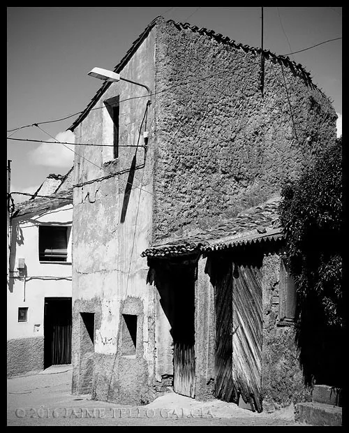 Villaluenga es una excepción en la tierra de Castillos que es el Valle del Manubles. Desconozco si contó con fortaleza o no, lo que parece es que hoy día no queda rastro de ella. Además, al asentarse Villalengua sobre una loma suave, también es singular en la comarca por su morfología: un casco urbano compacto y bien trazado y poco resguardado, cuya forma se asemeja a un círculo, al contrato que Moros, Bijuesca o Torrijo que son fantásticos laberintos urbanos. Por ello el paseo por el pueblo se hace cómodo y agradecido, con suaves pendientes y calles más o menos largas. Lo que sin embargo sí encuentro en Villaluenga al igual que en el resto del valle es el mismo trágico aunque muy pintoresco abandono que es la seña de identidad de muchos pueblos de esta comarca de Calatayud, de esta provincia de Zaragoza y de este Aragón que se sigue despoblando año tras año. Y aún así, es este uno de los pueblos más poblados y con el casco urbano más amplio de todo el Valle del Manubles, con cerca de 400 vecinos. Cuenta con algunos comercios y bares, lo que no es poco por estos lares, si me permiten la rima. En el centro de abre la bella Plaza Mayor a la que asoman los dos edificios más importantes: el ayuntamiento, y tras él, el campanario de la Iglesia de la Asunción, del siglo XVI, cuya elaborada portada se esconde bajo los arcos del edificio consistorial. El resto del pueblo es una sucesión de casas, normalmente de dos alturas y sobrado, algunas renovadas y otras caídas, pero que en general ponen de manifiesto el deseo de los hijos del pueblo por mantener viva su presencia en Villalengua renovando el caserío. Además, el entorno natural es excepcional, con paisajes que se abren y se tornan amables hacia el sur y se vuelven agrestes, casi encañonados hacia el norte por Torrijo.