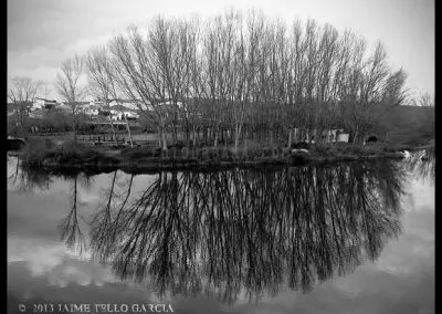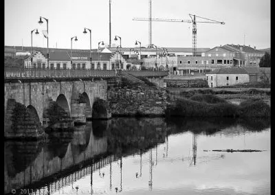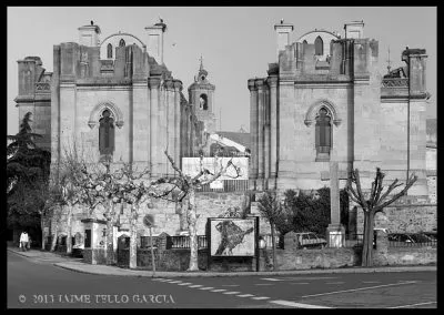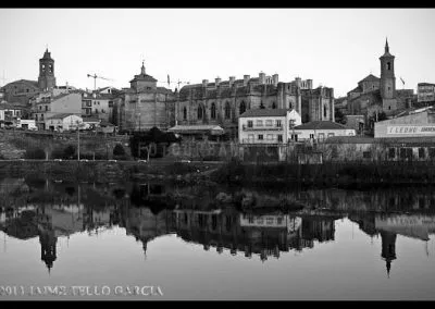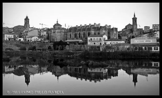 Alba de Tormes es una de las grandes villas monumentales y uno de los principales hitos turísticos de los muchos que existen en la provincia de Salamanca. Sin embargo, a pesar de la importancia del patrimonio que alberga la villa, su fama como destino no parece estar tan relacionada con el Ducado al que dió nombre y que ha sido, en los cinco últimos siglos, la principal Casa de España, la Casa de Alba, como con la presencia en la villa de Santa Teresa de Jesús, que aquí encontró muerte. El esqueleto del santuario que se habría de levantar en su memoria, ha quedado varado sobre el perfil del Tormes esperando mejor ocasión para elevar su estampa en recuerdo de la santa abulense. Volvamos a Los Duques, que han mantenido y mantienen con esta tierra salmantina una estrecha relación y numerosas propiedades. Obtuvieron tal título y dominios de manos de Enrique IV en el año 1472, al transformar el viejo Señorío de Alba en Condado y después, en Ducado. Eran los Álvarez de Toledo, una de las más poderosas familias de la España moderna y unificada. La presencia de la Casa en la villa aportó no sólo prestigio, sino riqueza y un buen número de edificaciones, como el Castillo del que sólo se conserva un torreón (impresiona comprobar en la visita al mismo, la verdadera dimensión original de la fortificación, y entristece saber de su pérdida). Y como decía, Santa Teresa no anduvo manca a la hora de traer fama y gloria a la villa en la que murió y recibió sepultura en 1582. A su figura siguió la fundación de conventos y la abundancia de edificaciones religiosas, sobresaliendo la antedicha e inconclusa Basílica planificada a finales del siglo XIX en estilo neogótico y cuya fábrica destaca junto a la torre de San Pedro. Ambos edificios reciben al viajero proveniente de Salamanca, siendo la principal seña de identidad de Alba junto al Castillo. Hasta siete iglesias se alzan en sus calles, y algunos monasterios, conventos, lienzos y torreones de sus viejas murallas. Y San Leonardo junto al Tormes. Y la Plaza Mayor con ese gracioso aire decimonónico de ciudad pequeña, y sus calles y espacios públicos donde piedra y ladrillo se dan la mano para formar un casco histórico excepcional. Aunque sin duda, de Alba me quedo con la vista distante, con desde la otra orilla del Tormes, o desde su playa fluvial, o desde cualquier punto en el que observar el promontorio sobre un río que parece querer encañonarse, y que exhibe orgulloso la preciosa villa que protege del paso del tiempo.