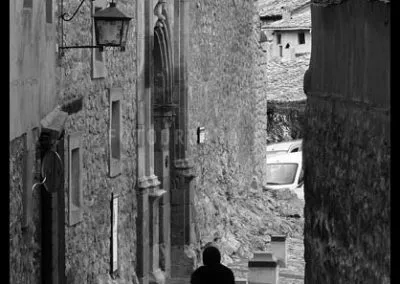 La Provincia de Teruel guarda celosa, entre sus sierras y valles, una cantidad asombrosa de joyas del arte, la arquitectura y el urbanismo medieval. De entre todos los pueblos turolenses que han sido declarados Conjunto Histórico destacan unos cuantos espectaculares cuya fama ha traspasado fronteras. Pueblos que por lo general se disponen junto a un río o una sierra, emplazamientos defensivos milenarios que cuentan con castillo, muralla, y una marcada estructura urbana medieval. Tal es el caso de Valderrobres, Rubielos, Mora o La Iglesuela del Cid, por nombrar unos pocos. Y al sur, cruzando la depresión del Jiloca y del Turia, aparece Albarracín, estrella indiscutible. La Ciudad de Albarracín es cabecera de su comarca, de su tierra y de su sierra. Es una ciudad antigua y, sin duda, uno de los pueblos con mayor prestigio turístico y monumental del país. Albarracín es un sueño imposible en un emplazamiento único, un compendio de historia y arte que trepa por peñas y riscos y se asoma al cauce del Guadalaviar, cuyos marcados meandros abrazan el casco urbano y encañonan su entorno natural. Albarracín es una plaza milenaria, fortificada a raiz de la dominación musulmana que la convirtió en referente en la defensa de las tierras aragonesas. Cristianizada y convertida en cabecera de una amplia Tierra, sede además de mercado y justicia, perdió su pujanza en favor de la capital provincial, Teruel, ubicada en un lugar más accesible. A pesar de ello, o gracias a ello, la ciudad quedó conservada de forma casi perfecta y, ayudada por la intensa labor de rehabilitación de las últimas décadas, ha logrado situarse en un lugar preferente del turismo cultural de interior. La ciudad está situada a casi 1200 metros de altitud, sobre un notable peñasco. Por ello, por el marcado desnivel, la mejor forma de disfrutar de Albarracín es emprendiendo la marcha desde su parte más baja, dejando el coche y progresando por sus calles estrechas y sinuosas. Podemos llegar hasta la Plaza Mayor, epicentro de la vida urbana de la que parten los barrios de la ciudad, dispuestos en brazos que siguen la cuerda del promontorio sobre el que se asientan. Hacia el sur, la ciudad más noble y consolidada, que alberga la Catedral y las casas más notables. Y hacia el norte, los arrabales que parten hacia las salidas y trepan por la pronunciada ladera sin llegar a tocar la muralla. La cerca envuelve casi por completo a Albarracín, y recorrerla, si el estado de forma lo permite, es del todo recomendable para disfrutar de las vistas excepcionales del lugar. Curiosear por sus lienzos, por sus torres y almenas es un ejercicio de historia y naturaleza que nos llevará hasta la entrada oeste de la ciudad. Por allí, las casas comienzan de nuevo a abrazarnos y al caminar entre ellas, entre el entramado y los muros rojizos de yeso, entre aleros y rejería tenemos la sensación de haber vuelto a un medievo que sus habitantes han conservado con especial sabiduría, ayudados sin duda por la labor ímproba de la Fundación Santa María de Albarracín, que colabora tan intensamente en la vida cultural y patrimonial. El castillo, la muralla, la catedral, iglesias, monasterios, torreones, palacios y casonas, el bellísimo cementerio en el extremo meridional del casco, y la arquitectura popular que cementa todo el recorrido y crea uno de los paisajes más sugestivos de la vieja Europa.