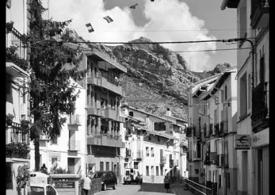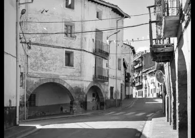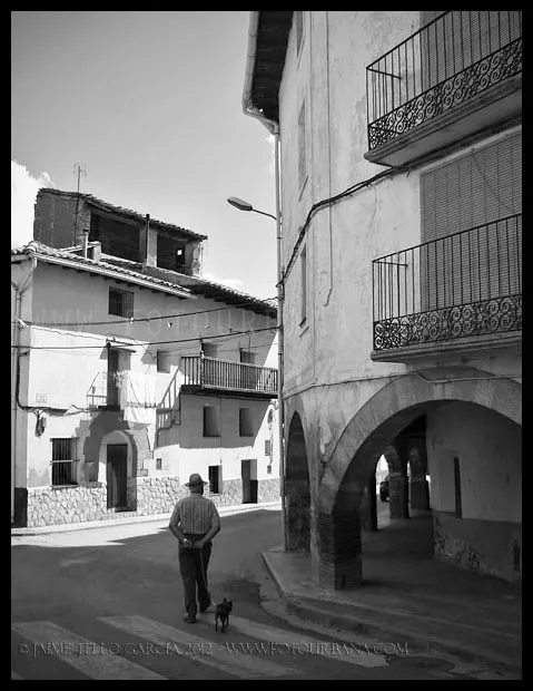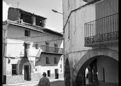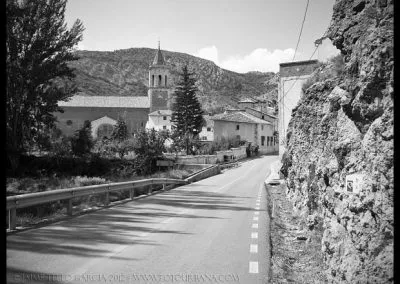 Aliaga es un poblamiento milenario cuyo término ya estuvo poblado por los íberos, aunque es durante la dominación musulmana cuando se levanta su castillo y logra cierta relevancia en un territorio de orografía difícil como es este. Reconquistada y amurallada, la villa mantuvo su relevancia como plaza defensiva durante todo el medievo. Llegué hasta Aliaga sin saber demasiado de su historia y patrimonio, atraído más por la fama, me temo que un tanto efímera, que alcanzó Miravete de la Sierra, su pueblo vecino, mediante campañas publicitarias más o menos acertadas. El caso es que saliendo de Miravete, acabé en Aliaga casi por casualidad y descubrí aquí la belleza del alma de Teruel, en el tránsito entre el Maestrazgo y las Cuencas Mineras. Paisaje de exuberante geología del que Aliaga es tan digno referente. Aliaga está inmerso en un entorno natural excepcional, cercano al Parque Cultural del Rio Martín e integrado en el Parque Geológico del que sus increíbles formaciones rocosas forman parte. Recursos turísticos no le faltan, y el pueblo intenta prosperar atrayendo al turismo tras la profunda crisis demográfica que atravesó en décadas pasadas. Aliaga fue un pueblo de gran importancia hasta que sus minas y su central térmica cerraron por el encarecimiento del carbón. Comenzó entonces, en los años 80 del siglo XX, un declive que aún continúa, hasta quedar rebajada su población a los apenas 300 habitantes con que cuenta en la actualidad y que ocupan un casco urbano medieval en el que destaca la Iglesia barroca de San Juan Bautista, del siglo XVII, y su gran torre que ejerce como referente de Aliaga en el horizonte. El templo centra el intrincado callejero adaptado a la pendiente y limitado por el curso del Guadalope y los peñascos del entorno. Un juego de pasajes estrechos, calles y plazas en las que la soledad y la despoblación se hacen patente. En el punto más alto de la agreste montaña que respalda Aliaga se alzan los restos de su castillo, del siglo XII, vieja ruina de difícil acceso. Y en lo bajo, junto a la carretera, se ubican diversos comercios, alojamientos y la gasolinera que dan una sensación de vida y dinamismo que parece excesiva para un pueblo tan remoto y pequeño. ¿Será que la apuesta por el turismo y la vuelta al pueblo están funcionando en Aliaga?