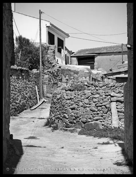 El Sayago zamorano en realidad son dos mundos: uno que podríamos decir “de costa", más exuberante y cálido, que se asoma a los Arribes, y otro de interior, donde abundan huertos, cultivos, praderas y dehesas, paisaje que caracteriza a la comarca. Almeida es uno de los grandes pueblos del interior sayagués, ubicado en la gran plataforma de interfluvio entre el Duero y el Tormes. Cercano ya al pueblo está el enorme Embalse de Almendra, agua tormesina remansada que baña las orillas zamorana y salmantina y que aporta vida y frescor a esta tierra de frontera. Lo primero que captó mi atención de este pueblo fue su precioso topónimo, de bella sonoridad y reminiscencia árabe compartido con famosas plazas portuguesas. Aunque no hay consenso sobre su origen, los unos hablan de referencias a mesetas o campos llanos como los que rodean al pueblo, y otros hablan de una leyenda que ubicaba a Almeida en "el medio" de una tierra de señorío de siete villas ante cuyas disputas decidieron establecer un núcleo centrado en el territorio para apaciguar los ánimos. Y esa sería Almeida, que aún conserva en su escudo la referencia a esas siete villas.