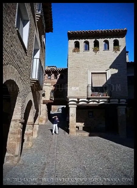 Hasta no hace tanto, la garra de la despoblación apenas entendía de turismo ni de patrimonio ni de nada relacionado con el progreso, y estuvo a punto de dejar a Alquézar abandonada a su suerte. Y no hubiera sido extraño, al ser este un pueblo remoto y no muy bien comunicado. Al acercarme hasta Alquézar desde Aínsa tuve que decidir entre tomar la autonómica hasta Barbastro y dar un rodeo de mil demonios, o aventurarme por la carretera que transcurre por el Vero y sus cañones, y que sobre el mapa parecía más difícil y resultó serlo mucho más. Elegí muy mal y tomé esta segunda que además estaba en obras, desviándonos por pistas forestales que mi pobre coche resistió con dificultad. Creo que por eso se averió a los pocos días. Llegué por tanto a Alquézar malhumorado, tras más de una hora de viaje lento y accidentado, pero Alquézar, que tanto tiempo llevaba deseando visitar, hizo que mi ánimo se recuperara tan pronto como divisé el perfil de la Colegiata, del caserío a sus pies y de las muelas que lo guardan a su espalda. La silueta urbana de Alquézar es de las más reconocibles de Aragón. Es este un pueblo monumental, un pueblo museo y sin duda uno de los más espectaculares del nordeste peninsular, declarado Conjunto Histórico Artístico en el año 1982. El viejo castillo moro levantado en el siglo IX, Al-Qasr, defensa y avanzadilla sobre la ciudad de Barbastro, ubicado sobre la peña que aún es el principal punto de interés del pueblo, fue el origen del poblamiento que se extendió por un terreno difícil y encrespado hasta formar una villa medieval que es, en gran parte, la que podemos disfrutar a día de hoy. Reconquistada la fortaleza en 1069 a medida que avanzaba el reino cristiano sobre tierras aragonesas, Alquézar perdió con ello su importancia estratégica y militar pero siguió siendo una plaza comercial y religiosa de gran importancia. Pasaron los siglos y el pueblo siguió siendo el mismo. A excepción del Arrabal, donde han surgido nuevos edificios, en general muy respetuosos con la arquitectura tradicional de la zona y que albergan hoteles, restaurantes y la propia oficina de turismo, sorprende encontrar un patrimonio construído original casi en su totalidad, arquitectura residencial de ladrillo salpicado con el color del mortero y de la piedra que alcanza su máxima expresión en la bellísima Plaza Mayor soportalada y jalonada de casas blasonadas. Uno de los rincones más genuinos de la tradición constructiva aragonesa. Lo de la Colegiata es otra historia. No sólo es la Colegiata sino todo el conjunto monumental que corona el risco de Alquézar. El edificio es una muestra espléndida de arte religioso, iniciada en el siglo XII aunque el edificio actual data, en su mayor parte, de la reconstrucción llevada a cabo en el siglo XVI. El claustro gótico del XIII, está plagado de fabulosas pinturas que sus muros llevan siglos guardando, imágenes de la vida de Jesús realizadas en diversas épocas. Tras una completa visita guiada al conjunto, marché de Alquézar y eché en falta dos cosas: la presencia de más establecimientos comerciales y restaurantes en el centro histórico, ya que me sorprendió la escasez de oferta en un pueblo tan turístico; y el hecho de que estuviera vetado el acceso a la muela hasta que no hubiera abierto la Colegiata, un error incomprensible que al visitante corto de tiempo puede impedirá disfrutar de la vista excepcional desde lo más alto del pueblo.