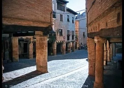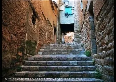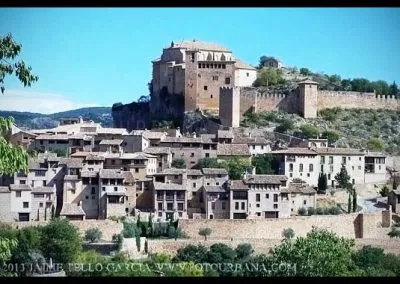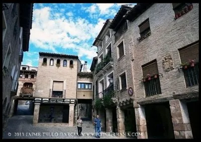 Hasta no hace tanto, la garra de la despoblación apenas entendía de turismo ni de patrimonio ni de nada relacionado con el progreso, y estuvo a punto de dejar a Alquézar abandonada a su suerte. Y no hubiera sido extraño, al ser este un pueblo remoto y no muy bien comunicado. Al acercarme hasta Alquézar desde Aínsa tuve que decidir entre tomar la autonómica hasta Barbastro y dar un rodeo de mil demonios, o aventurarme por la carretera que transcurre por el Vero y sus cañones, y que sobre el mapa parecía más difícil y resultó serlo mucho más. Elegí muy mal y tomé esta segunda que además estaba en obras, desviándonos por pistas forestales que mi pobre coche resistió con dificultad. Creo que por eso se averió a los pocos días. Llegué por tanto a Alquézar malhumorado, tras más de una hora de viaje lento y accidentado, pero Alquézar, que tanto tiempo llevaba deseando visitar, hizo que mi ánimo se recuperara tan pronto como divisé el perfil de la Colegiata, del caserío a sus pies y de las muelas que lo guardan a su espalda. La silueta urbana de Alquézar es de las más reconocibles de Aragón. Es este un pueblo monumental, un pueblo museo y sin duda uno de los más espectaculares del nordeste peninsular, declarado Conjunto Histórico Artístico en el año 1982. El viejo castillo moro levantado en el siglo IX, Al-Qasr, defensa y avanzadilla sobre la ciudad de Barbastro, ubicado sobre la peña que aún es el principal punto de interés del pueblo, fue el origen del poblamiento que se extendió por un terreno difícil y encrespado hasta formar una villa medieval que es, en gran parte, la que podemos disfrutar a día de hoy. Reconquistada la fortaleza en 1069 a medida que avanzaba el reino cristiano sobre tierras aragonesas, Alquézar perdió con ello su importancia estratégica y militar pero siguió siendo una plaza comercial y religiosa de gran importancia. Pasaron los siglos y el pueblo siguió siendo el mismo. A excepción del Arrabal, donde han surgido nuevos edificios, en general muy respetuosos con la arquitectura tradicional de la zona y que albergan hoteles, restaurantes y la propia oficina de turismo, sorprende encontrar un patrimonio construído original casi en su totalidad, arquitectura residencial de ladrillo salpicado con el color del mortero y de la piedra que alcanza su máxima expresión en la bellísima Plaza Mayor soportalada y jalonada de casas blasonadas. Uno de los rincones más genuinos de la tradición constructiva aragonesa. Lo de la Colegiata es otra historia. No sólo es la Colegiata sino todo el conjunto monumental que corona el risco de Alquézar. El edificio es una muestra espléndida de arte religioso, iniciada en el siglo XII aunque el edificio actual data, en su mayor parte, de la reconstrucción llevada a cabo en el siglo XVI. El claustro gótico del XIII, está plagado de fabulosas pinturas que sus muros llevan siglos guardando, imágenes de la vida de Jesús realizadas en diversas épocas. Tras una completa visita guiada al conjunto, marché de Alquézar y eché en falta dos cosas: la presencia de más establecimientos comerciales y restaurantes en el centro histórico, ya que me sorprendió la escasez de oferta en un pueblo tan turístico; y el hecho de que estuviera vetado el acceso a la muela hasta que no hubiera abierto la Colegiata, un error incomprensible que al visitante corto de tiempo puede impedirá disfrutar de la vista excepcional desde lo más alto del pueblo.
