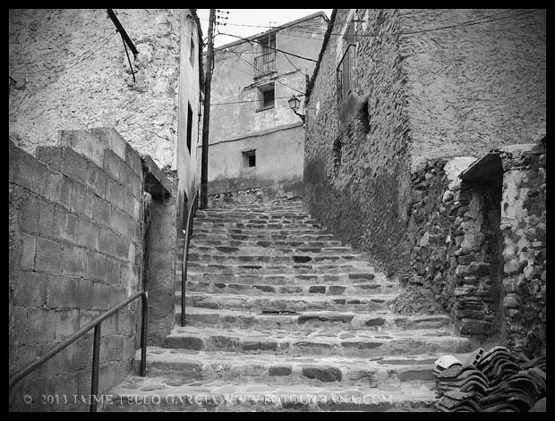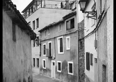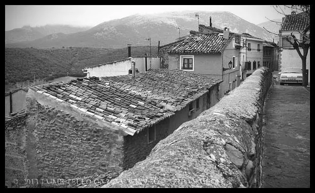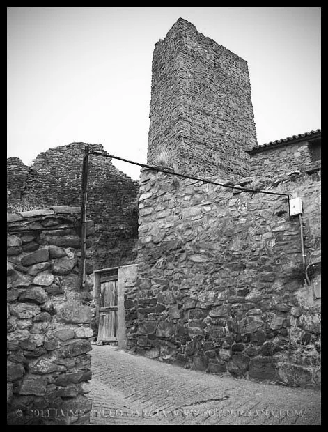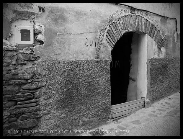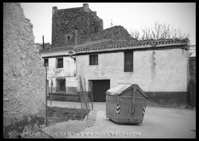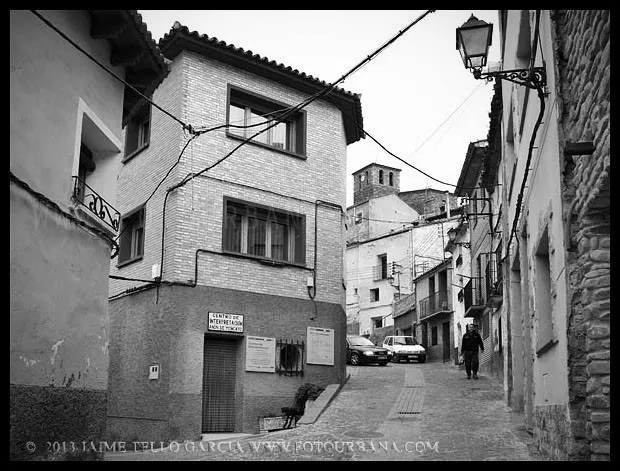 Llegué a Añón de noche muy cerrada, sin luna. Oscuridad y miedo desde Veruela con mi carnet de conducir recién estrenado. Al llegar por la espalda del pueblo, no pude hacerme una idea de lo que me esperaba ya que el hotel estaba a las afueras. Todo parecía hotel y oscuridad hasta las cumbres elevadas. Con la luz del día pude descubrir la belleza de su casco urbano, coronado por el conjunto de su Iglesia de Santa María y la vieja fortaleza, más palacio que castillo, y por el juego perpendicular de empinadas cuestas y largas calles que siguen las curvas de nivel. Varias casas blasonadas y restos de la muralla en la que sobresale la puerta orientada hacia el Moncayo, completan un conjunto histórico cementado por viejas e importantes muestras de arquitectura popular, fachadas de piedra y revoco, ruina y modernidad que luchan por no caer al Huecha en el empinado entramado urbano.