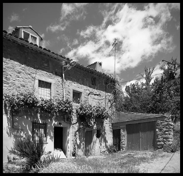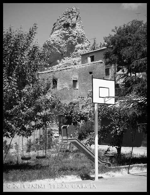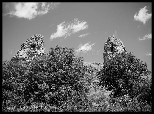 Un puñado de casas desordenadas forman el pequeño casco urbano de Arbujuelo y se apiñan en el valle fresco que por aquí forma el Pradejón, arroyo de corto recorrido que morirá en el cercano Jalón, al norte, allá por Medinaceli. La carretera que viene de Layna corre por el páramo en cota más alta y desde ella es difícil intuir la presencia del pueblo. Aunque para el que sepa dónde mirar será más fácil localizarlo ya que lo que sí se ve son los colmillos de conglomerado que lo protegen y son su seña de identidad. Los Tolmos dan sombra mañanera al pueblo de modestas casas de piedra y entre ellas aparece de pronto un autobús londinense de dos pisos. Y me pregunto cómo habrá llegado hasta allí, y marcho sin respuesta.