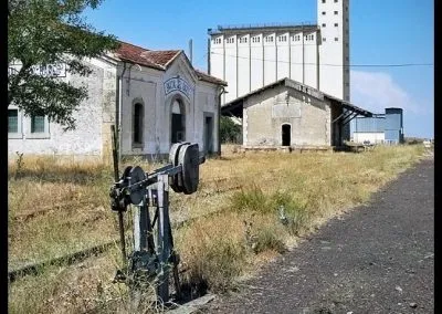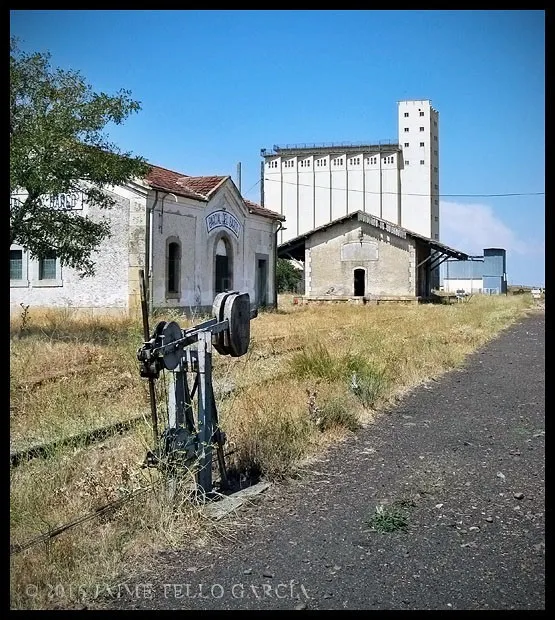 Barcial del Barco es un pueblo muy bien ubicado junto agua, asfalto y hierro en el eje norte-sur más potente del occidente peninsular. El Esla, la Vía de la Plata que hoy es buena carretera y el tristemente clausurado ferrocarril de Plasencia a Astorga. Cercano ya a Benavente, Barcial es un bello pueblo que surgió en el viejo camino y creció a lo largo de él, encerrado entre el asfalto y los antiguos raíles. Sobre el páramo que domina el valle del Esla se alza, como varada, la Iglesia de Santa Marina, patrona del pueblo, cuya torre octogonal, de un color intenso al atardecer, es el principal hito del municipio, con permiso del enorme silo de la vieja estación. El silo es impresionante, visto desde la carretera o desde las viejas vías, en la distancia o en primer plano, es de los más grandes y espectaculares que yo he visto. Por lo demás, Barcial es un bonito pueblo muy típico de estas tierras, de casas no demasiado altas y calles amplias, muros de tapial y fachadas de ladrillo o revoco de diversos colores. La paz se respira caminando por sus calles, y si es posible, paseando hasta la estación podremos disfrutar de la preciosa decadencia del ferrocarril, que dió vida al pueblo y parece pedir su reapertura.
