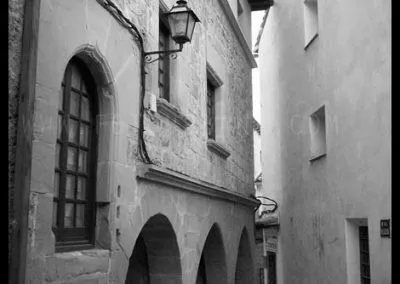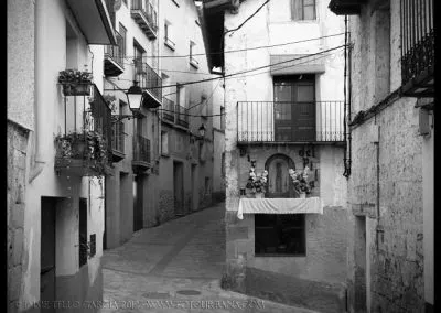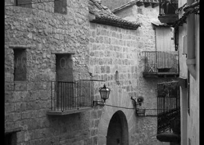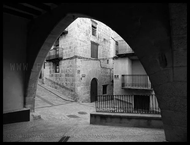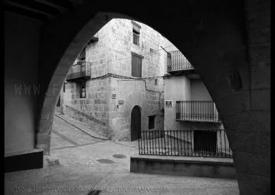 Es cierto que Beceite no es el pueblo más monumental de la comarca, Valderrobres o Calaceite juegan ese papel, y sin embargo es un pueblo singular, especial por su ubicación y porque aún conserva casi intacta su estructura de villa amurallada. Varias puertas dan acceso al recinto de su casco urbano, que en las últimas décadas ha experimentado un gran crecimiento debido al auge del turismo rural y la segunda residencia, beneficiado por la cercanía a las tierras catalanas, donde esta cercana tierra aragonesa se ha puesto tan de moda. La estructura de la villa guarda la esencia de su pasado morisco y medieval, un entramado urbano irregular adaptado a la orografía y que conduce irremisiblemente al punto más alto, donde se ubicara el desaparecido castillo y cercano ya a los edificios de su Iglesia de San Bartolomé, del siglo XVIII con elementos góticos y barrocos, y el Ayuntamiento, fabuloso edificio renacentista con lonja en la línea de la tradición bajoaragonesa. Por las calles del pueblo aparecen un gran número de casonas y algunos palacios góticos y renacentistas levantados en sillar, de portales adovelados, que recuerdan la importancia que tuvo esta plaza en la defensa de la frontera entre reinos y los linajes importantes que albergara.