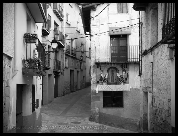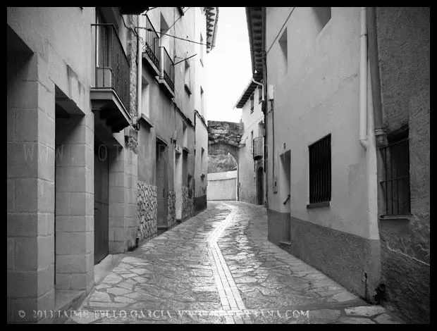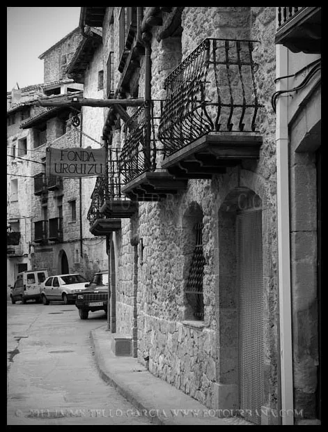 Beceite es el último y más remoto de los pueblos de la comarca, ubicado en un "cul de sac" a partir del cual no sigue la carretera hacia otras tierras, sino que se ve interrumpida por la magnificencia de los Puertos. Beceite se encuentra escondido en las profundidades de esta sierra que ejerce de frontera natural entre Aragón, Cataluña y la Comunidad Valenciana y que alberga, a mi parecer y el de otros entendidos, el bosque mediterráneo mejor conservado de la península. El propio acceso al pueblo se hace complejo y tortuoso a traves de la única carretera en buen estado que lo comunica, que viene de Valderrobres. Un tajo en la roca conduce al puente que, saltado el Matarraña, se acerca a las puertas de la villa. A la izquierda del puente sale un camino misterioso, que algunos mapas reflejan y otros no, que siguiendo paralelo al Algars conducirá a Lledó entre montañas, huertas y bosque mediterráneo. Algunos mapas también reflejan la existencia de un viejo camino que, partiendo desde Beceite hacia el sur y más allá del Parrissal, comunicaba con tierras levantinas atravesando la sierra. Esa es mi asignatura pendiente, adentrarme en las montañas en búsqueda del corazón y la esencia de esta comarca maravillosa. Por degracia, no soy muy amigo del senderismo, y opto por pasear por las calles del pueblo.