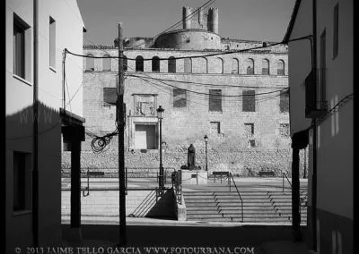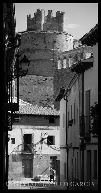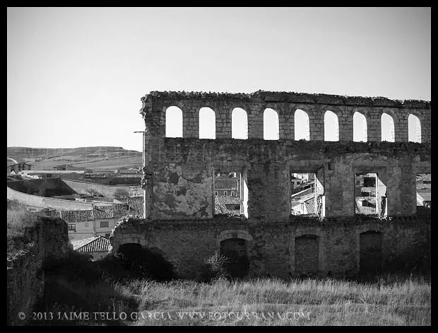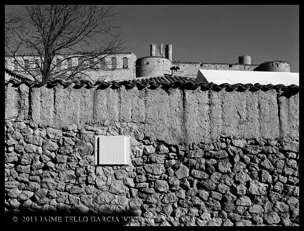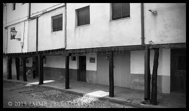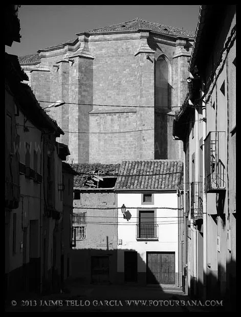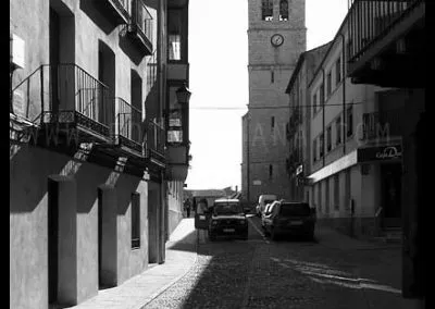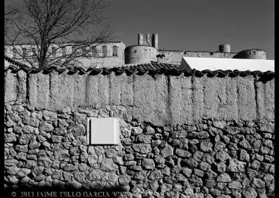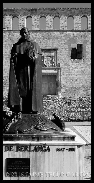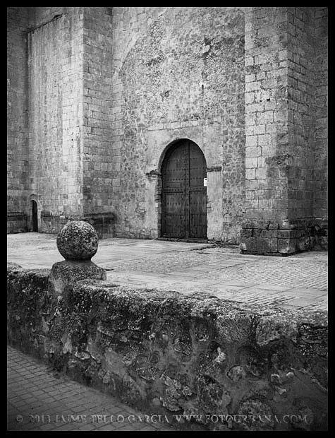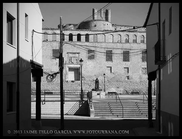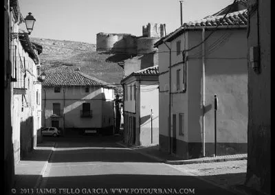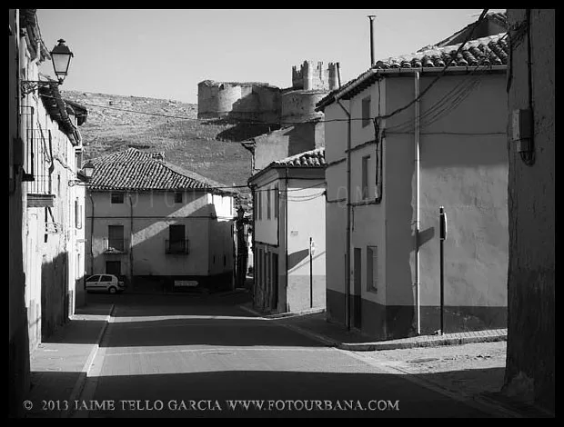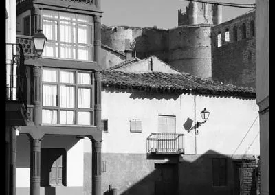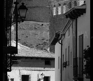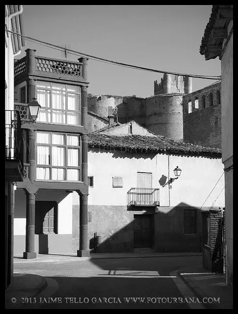 Perdido andaba yo por tierras sorianas, camino de El Burgo creo recordar y como siempre, por el camino menos directo para disfrutar más de la soledad de paisajes poco frecuentados. Y sin esperarlo me topé con el perfil de Berlanga de Duero, uno de los paisajes urbanos más espectaculares de España. Menuda sorpresa. Un castillo de grandes cubos circulares. Una muralla, a los pies del Castillo, de lienzos casi intactos y resonancias legendarias. Una fachada que es eso, pura fachada llena del aire de un viejo palacioausente, el de los Tovar, arruinado en la Guerra de la Independencia. Una fantástica Plaza Mayor porticada, castellana. Una Colegiata de dimensiones casi catedralicias. Una villa de enrevesado casco urbano medieval salpicado de palacios y de una arquitectura popular extraordinaria. Berlanga es un asentamiento humano milenario, que cobró un papel relevante durante la dominación musulmana, cuando se levantó una vieja alcazaba dependiente de la jurisdicción de Medinaceli. La posición estratégica de Berlanga de Duero, en la línea fronteriza entre los reinos cristianos y musulmanes, en un primer momento, y más tarde cercano a la frontera entre Castilla y Aragón justifica en buena medida la importancia que alcanzó durante la Edad Media. Tras la reconquista, la villa tomó su propia tierra, comarca histórica cuya cabecera sigue ostentando en la actualidad. Villa de Realengo, cae bajo el dominio de los Tovar que toman el Señorío y unen, de esta forma, el Ducado de Frías con el nuevo Marquesado de Berlanga. Los nuevos señores despojan a la villa de casi toda su herencia románica para construir la colegiata, el castillo y el palacio, los tres elementos fundamentales del patrimonio local. El palacio llegó a ser uno de los más importantes y ricos de toda Castilla, tal era el poder y la amplia jurisdicción de los Tovar de Berlanga. A pesar de las grandes hazañas que ha vivido esta villa, de los grandes hallazgos monumentales que se encuentran en sus calles, lo que hace aún más especial a Berlanga es la atmósfera de sus calles, calles casi desiertas de gente y plenas de silencio, fachadas que guardan la noble y austera vida de estos castellanos que en Soria parecen volverse aún más esquivos, tal es su aislamiento. Aunque poco a poco, gracias a esa moda del turismo rural, la modernidad está aportando luz y vida a estas tierras.