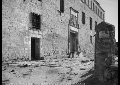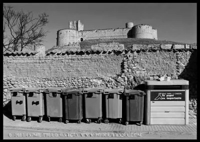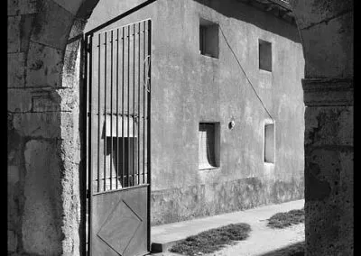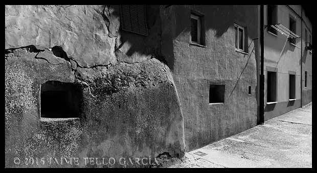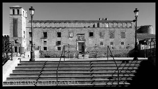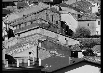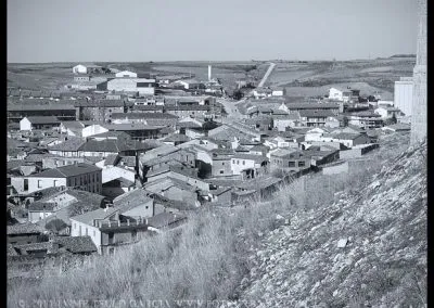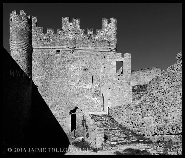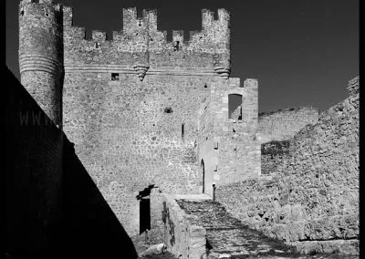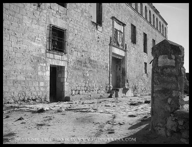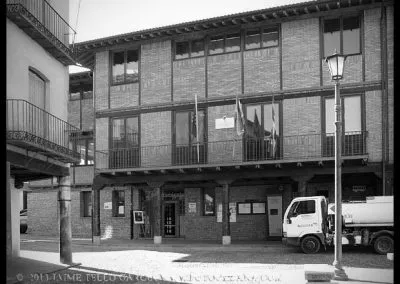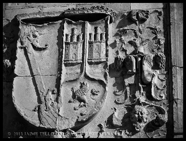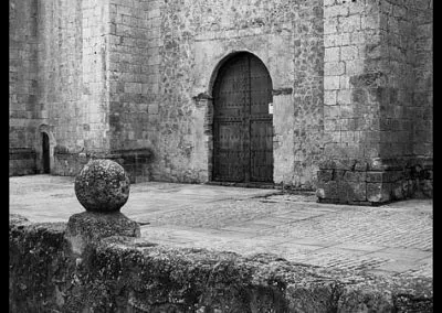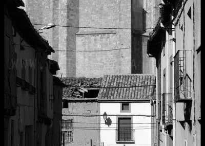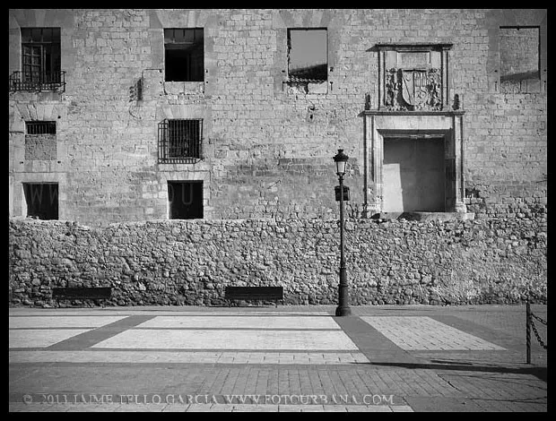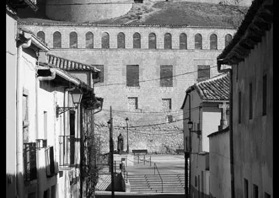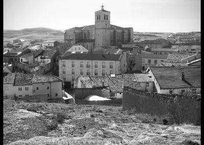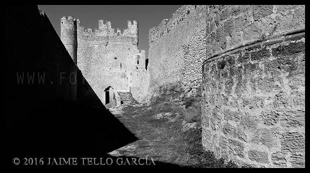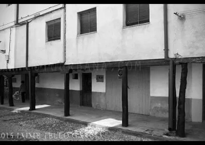 Perdido andaba yo por tierras sorianas, camino de El Burgo creo recordar y como siempre, por el camino menos directo para disfrutar más de la soledad de paisajes poco frecuentados. Y sin esperarlo me topé con el perfil de Berlanga de Duero, uno de los paisajes urbanos más espectaculares de España. Menuda sorpresa. Un castillo de grandes cubos circulares. Una muralla, a los pies del Castillo, de lienzos casi intactos y resonancias legendarias. Una fachada que es eso, pura fachada llena del aire de un viejo palacioausente, el de los Tovar, arruinado en la Guerra de la Independencia. Una fantástica Plaza Mayor porticada, castellana. Una Colegiata de dimensiones casi catedralicias. Una villa de enrevesado casco urbano medieval salpicado de palacios y de una arquitectura popular extraordinaria. Berlanga es un asentamiento humano milenario, que cobró un papel relevante durante la dominación musulmana, cuando se levantó una vieja alcazaba dependiente de la jurisdicción de Medinaceli. La posición estratégica de Berlanga de Duero, en la línea fronteriza entre los reinos cristianos y musulmanes, en un primer momento, y más tarde cercano a la frontera entre Castilla y Aragón justifica en buena medida la importancia que alcanzó durante la Edad Media. Tras la reconquista, la villa tomó su propia tierra, comarca histórica cuya cabecera sigue ostentando en la actualidad. Villa de Realengo, cae bajo el dominio de los Tovar que toman el Señorío y unen, de esta forma, el Ducado de Frías con el nuevo Marquesado de Berlanga. Los nuevos señores despojan a la villa de casi toda su herencia románica para construir la colegiata, el castillo y el palacio, los tres elementos fundamentales del patrimonio local. El palacio llegó a ser uno de los más importantes y ricos de toda Castilla, tal era el poder y la amplia jurisdicción de los Tovar de Berlanga. A pesar de las grandes hazañas que ha vivido esta villa, de los grandes hallazgos monumentales que se encuentran en sus calles, lo que hace aún más especial a Berlanga es la atmósfera de sus calles, calles casi desiertas de gente y plenas de silencio, fachadas que guardan la noble y austera vida de estos castellanos que en Soria parecen volverse aún más esquivos, tal es su aislamiento. Aunque poco a poco, gracias a esa moda del turismo rural, la modernidad está aportando luz y vida a estas tierras.