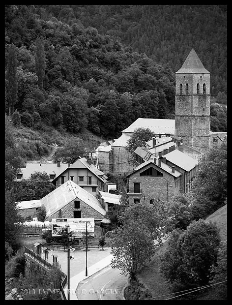 Bielsa se ha ganado una buena fama en todo el país por dos circunstancias: los terribles hechos acaecidos durante la Guerra Civil, la famosa "Bolsa de Bielsa" que arrasó el patrimonio y la sociedad local en la incomprensión de la batalla; y por ser una de las puertas de entrada a uno de los monumentos naturales más excepcionales del sur de Europa: el Valle de Pineta y el Parque Nacional de Ordesa y Monte Perdido. Es imprescindible, al visitar Bielsa, recorrer los escasos kilómetros que, hacia el oeste, nos acercarán al Parador y al fabuloso y emocionante circo del Valle de Pineta, murallón intimidante que le hace a uno sentir la belleza y grandiosidad que ha sido capaz de regalarnos este planeta nuestro tan maltratado. Pero es igualmente imprescindible para tantos excursionistas que se acercan hasta el parque, hacer una visita al pueblo de Bielsa para conocer su rica historia y tradiciones, ligadas a la vida dura del Pirineo, y para recorrer sus agradables calles. Aunque el pueblo apenas supera los trescientos empadronados, la sensación es muy distinta ya que la gran presión turística de las últimas décadas ha hecho aumentar considerablemente la dimensión de su casco urbano. Además Bielsa dista apenas diez kilómetros de la frontera francesa, algo de lo que también ha sabido beneficiarse con un importante auge comercial y de servicios que se hace patente en su Plaza Mayor y calles adyacentes. El emplazamiento del casco urbano de Bielsa obliga a hacer un esfuerzo adicional para gozar de diversas perspectivas y entender su disposición; habrá que trepar a las calles más elevadas para dominar la amplitud del valle en el que se ubica, y habremos de cruzar el Barrosa para observar las diversas terrazas que configuran la estructura del pueblo. Y en el paseo por su interior, desvelaremos el patrimonio que aún guarda con mimo. Aunque Bielsa sufrió una destrucción casi total durante la contienda fratricida, ha conservado los dos elementos más importantes de su patrimonio: el bellísimo ayuntamiento renacentista, soportalado y fortificado, una joya única de la arquitectura civil; y la Iglesia Parroquial, edificio notable de líneas puras levantado en el siglo XVI aunque muy reformado. A sus pies, el pequeño y gracioso puente que salva el cauce del río Barrosa, proveniente del norte y que poco más abajo rendirá sus aguas al grandioso Cinca, nacido en el cercano circo fruto de la unión de las numerosas cascadas que se despeñan por sus paredes.