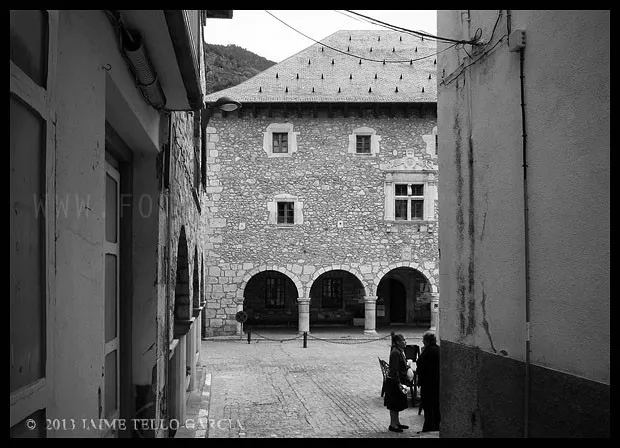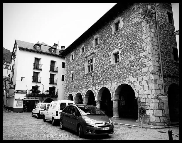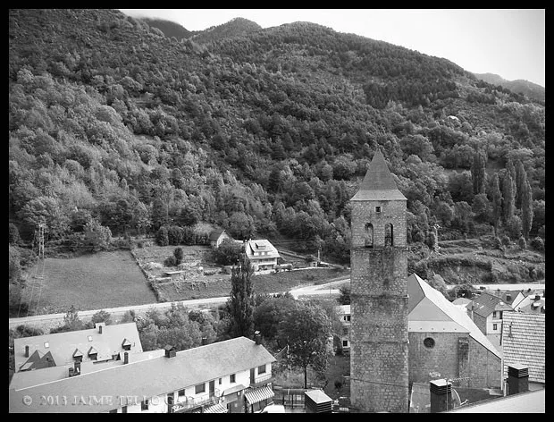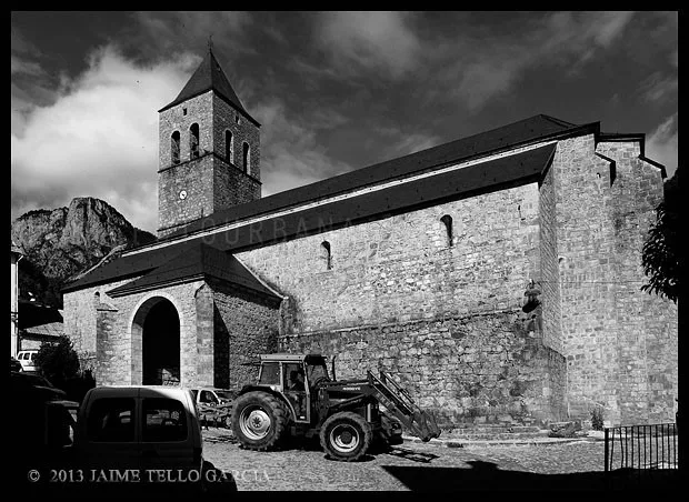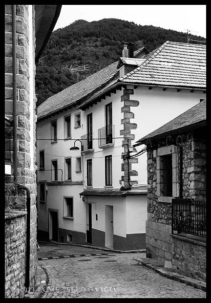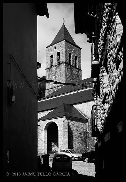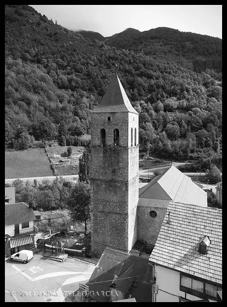 Bielsa se ha ganado una buena fama en todo el país por dos circunstancias: los terribles hechos acaecidos durante la Guerra Civil, la famosa "Bolsa de Bielsa" que arrasó el patrimonio y la sociedad local en la incomprensión de la batalla; y por ser una de las puertas de entrada a uno de los monumentos naturales más excepcionales del sur de Europa: el Valle de Pineta y el Parque Nacional de Ordesa y Monte Perdido. Es imprescindible, al visitar Bielsa, recorrer los escasos kilómetros que, hacia el oeste, nos acercarán al Parador y al fabuloso y emocionante circo del Valle de Pineta, murallón intimidante que le hace a uno sentir la belleza y grandiosidad que ha sido capaz de regalarnos este planeta nuestro tan maltratado. Pero es igualmente imprescindible para tantos excursionistas que se acercan hasta el parque, hacer una visita al pueblo de Bielsa para conocer su rica historia y tradiciones, ligadas a la vida dura del Pirineo, y para recorrer sus agradables calles. Aunque el pueblo apenas supera los trescientos empadronados, la sensación es muy distinta ya que la gran presión turística de las últimas décadas ha hecho aumentar considerablemente la dimensión de su casco urbano. Además Bielsa dista apenas diez kilómetros de la frontera francesa, algo de lo que también ha sabido beneficiarse con un importante auge comercial y de servicios que se hace patente en su Plaza Mayor y calles adyacentes. El emplazamiento del casco urbano de Bielsa obliga a hacer un esfuerzo adicional para gozar de diversas perspectivas y entender su disposición; habrá que trepar a las calles más elevadas para dominar la amplitud del valle en el que se ubica, y habremos de cruzar el Barrosa para observar las diversas terrazas que configuran la estructura del pueblo. Y en el paseo por su interior, desvelaremos el patrimonio que aún guarda con mimo. Aunque Bielsa sufrió una destrucción casi total durante la contienda fratricida, ha conservado los dos elementos más importantes de su patrimonio: el bellísimo ayuntamiento renacentista, soportalado y fortificado, una joya única de la arquitectura civil; y la Iglesia Parroquial, edificio notable de líneas puras levantado en el siglo XVI aunque muy reformado. A sus pies, el pequeño y gracioso puente que salva el cauce del río Barrosa, proveniente del norte y que poco más abajo rendirá sus aguas al grandioso Cinca, nacido en el cercano circo fruto de la unión de las numerosas cascadas que se despeñan por sus paredes.