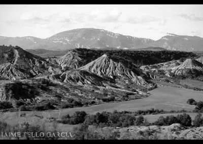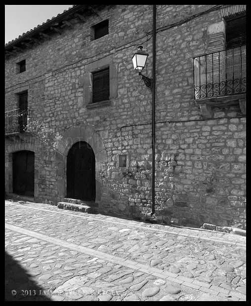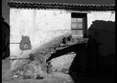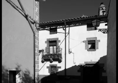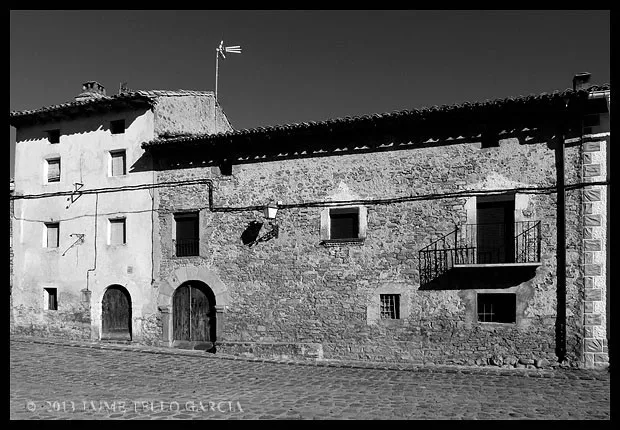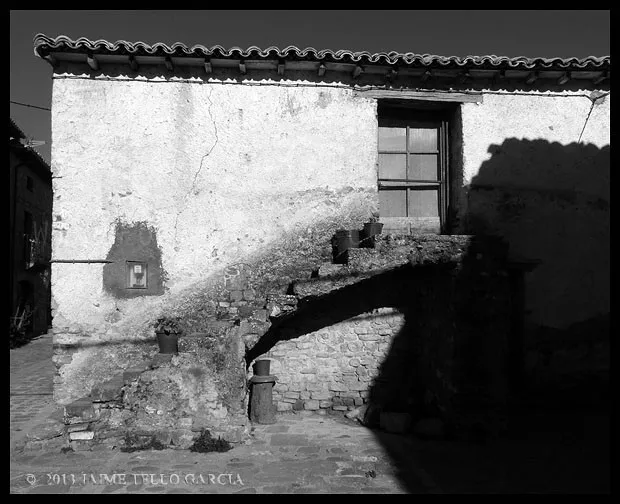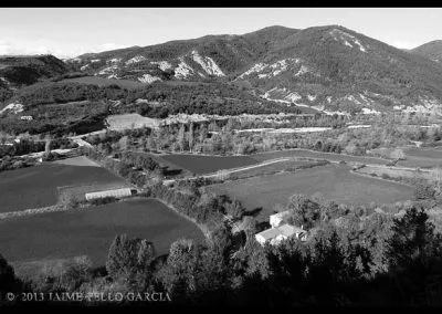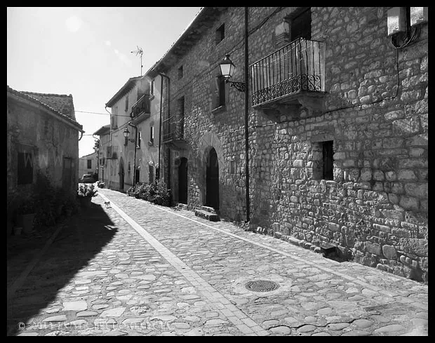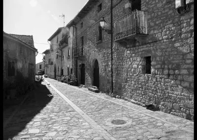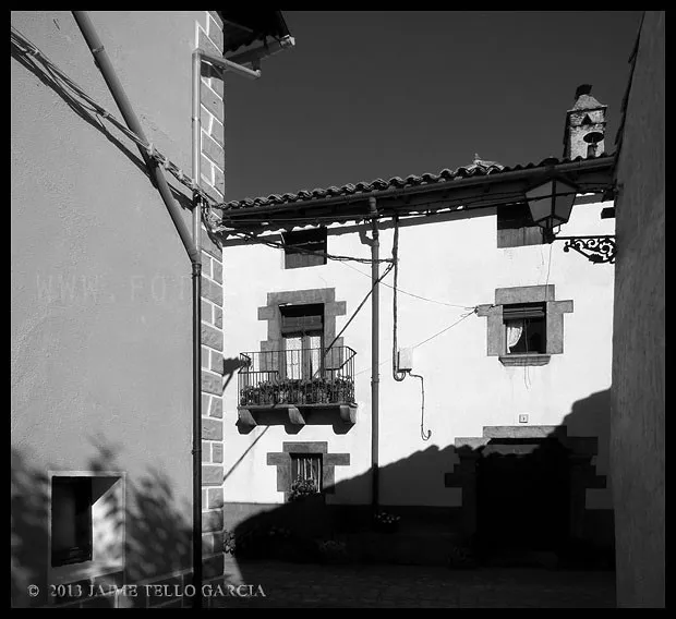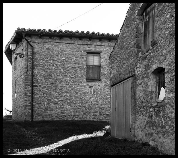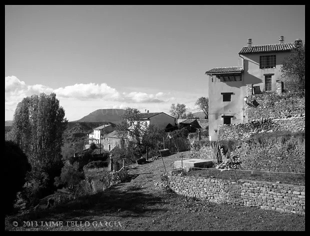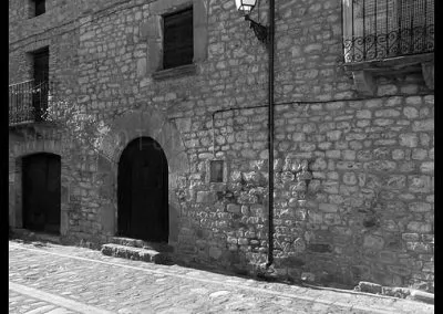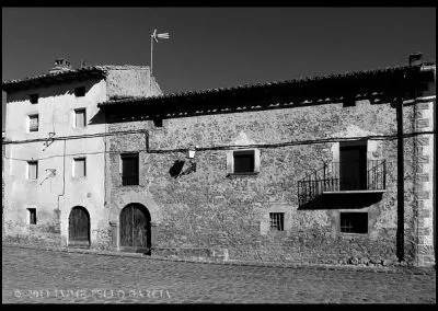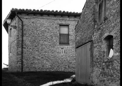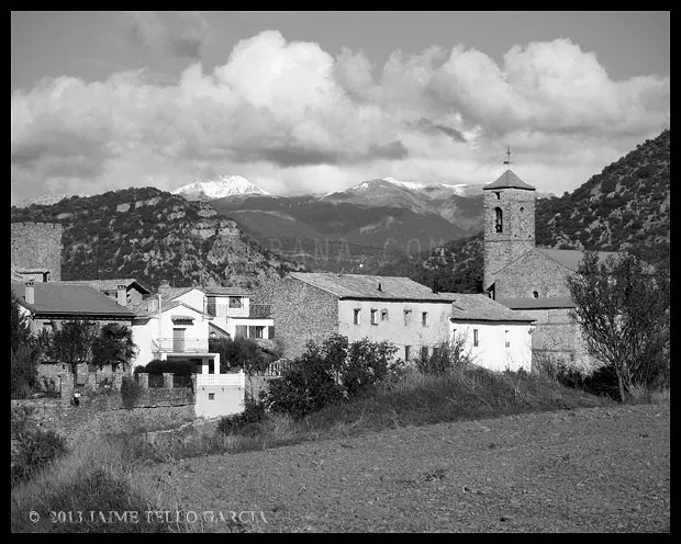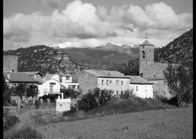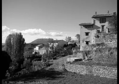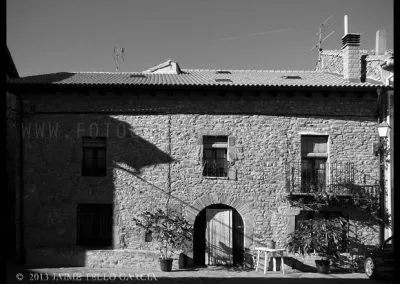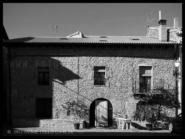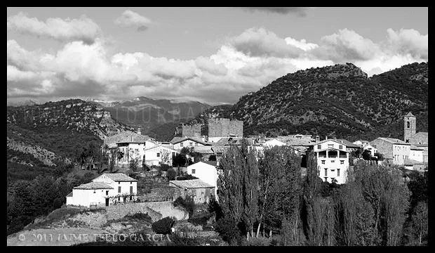 Un balcón sobre el valle del Veral, cuyas aguas bajan de la Foz de Biniés, ora salvajes ora mansas. Y al fondo del paisaje, al norte, las crestas recortadas de unos majestuosos Pirineos que crecen a la espalda de Hecho y Ansó y que parecen morir hacia las cercanas tierras de Navarra. Es Biniés, castillo y plaza vieja del viejo Aragón, cuyos muros, cuya fortaleza saluda y da un respiro al esforzado conductor que abandona los requiebros y peligros de la famosa y pedregosa foz. Biniés fue un descubrimiento, no entraba en mi ruta pero ante su característica silueta dormida sobre una marcada muela, no pude menos que desviar mi camino. El pueblo se ubica en las estribaciones del Pirineo más salvaje, y por aquí las sierras han perdido ya entidad y exuberancia. Es un paisaje más árido, un tanto inhóspito que remite por momentos a las bajas Cinco Villas zaragozanas, aunque la presencia del Belagua, Oza y los Tres Reyes nos recuerda que, en efecto, estamos en un territorio de frontera, duro, oculto y remoto. La ubicación de Biniés, entre los reinos de Aragón y Navarra y en el camino de entrada hacia Ansó favoreció su pronta consolidación como plaza fuerte, de cuyo papel ha trascendido su magnífico castillo, obra bajomedieval levantada sobre una antigua torre del siglo IX a la que sucesivos propietarios han dado un aire palaciego. El edificio se ubica al fondo del pueblo según se entra a él por carretera. Por contra, nos recibe la Iglesia del Salvador, barroca del XVII que cierra el casco urbano por el sector sur hacia el que se extienden los campos que dieron alimento y ocupación a sus vecinos, dedicados al cereal y el ganado. Hacia el oeste del conjunto monumental se abren las escasas calles que forman el entramado urbano, a las que se asoman algunas casas notables de arquitectura aragonesa, adornadas por grandes chimeneas y portales singulares, y otras casas demasiado renovadas, formando un conjunto ecléctico aunque destacable dado su emplazamiento y el paisaje que lo envuelve.
