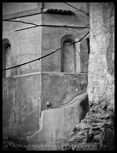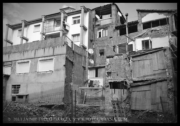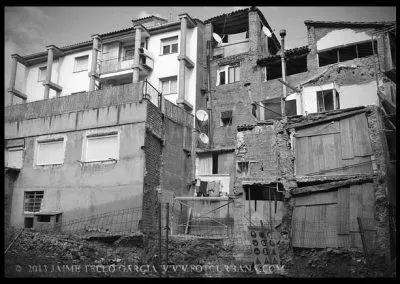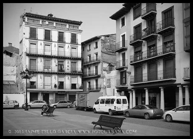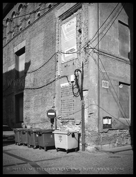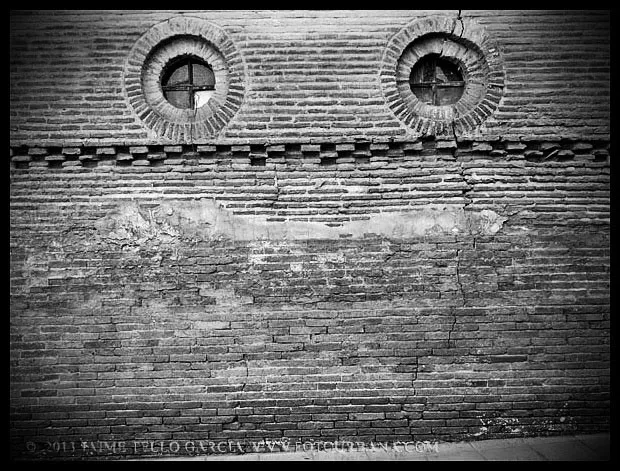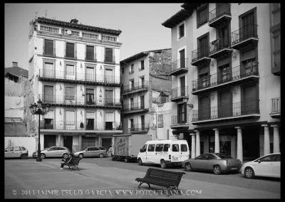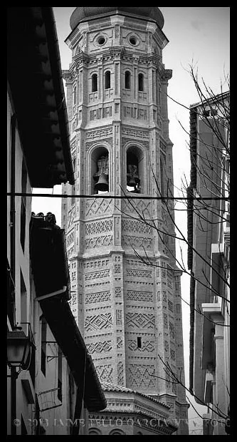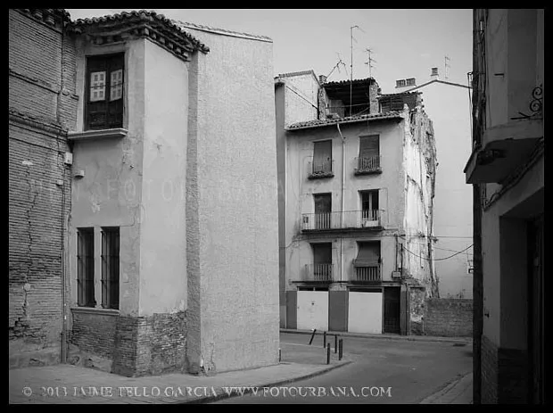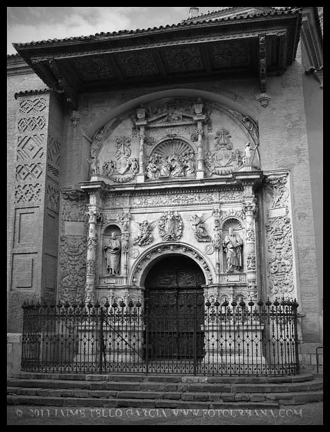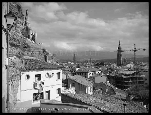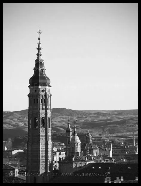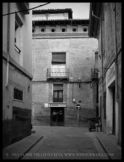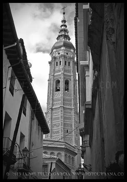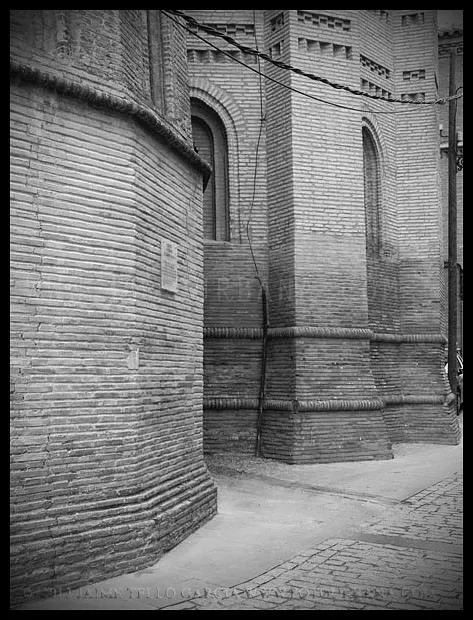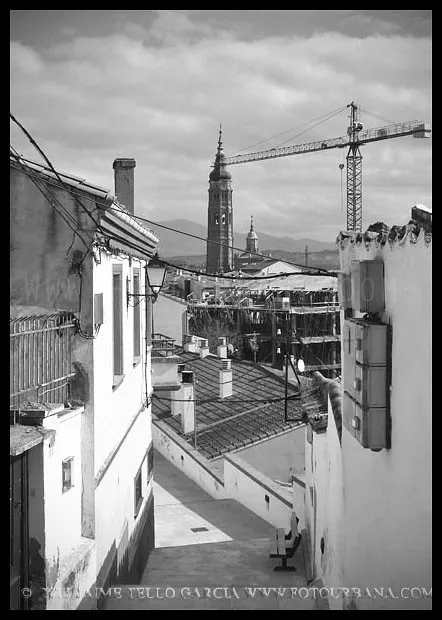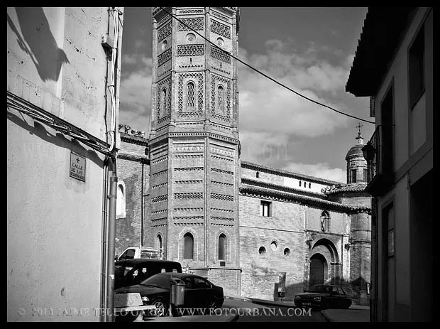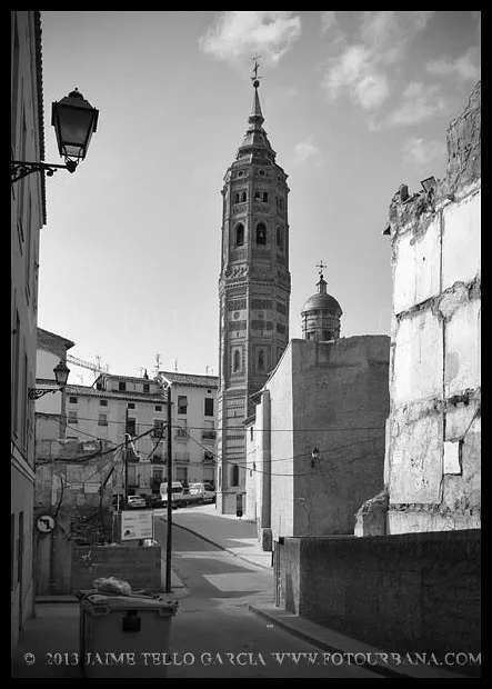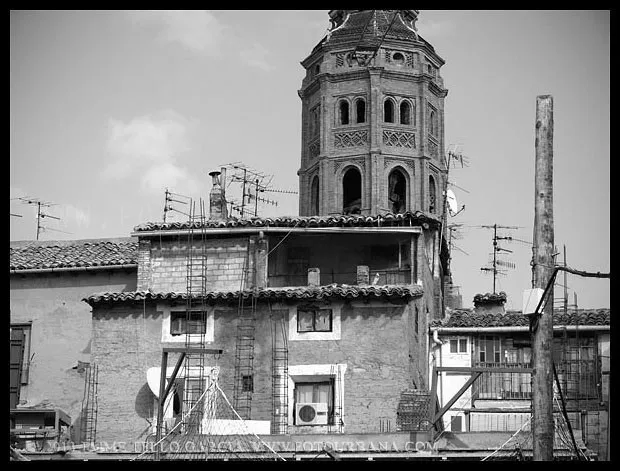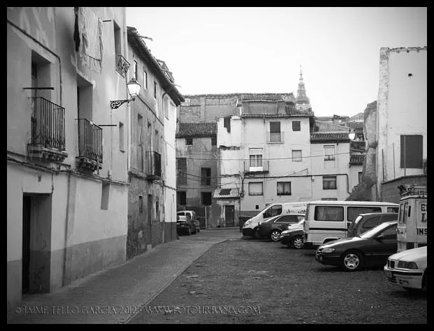 Con grandes ciudades, capitales de provincia, capitales de país o de región, intento siempre escribir unas líneas sin contar con datos históricos o estadísticos más allá de lo que yo haya percibido paseando por sus calles, ya que son estas ciudades de una entidad suficiente para hablar de ellas sin necesidad de objetividades de sobra conocidas. Y es que, al fin y al cabo, mi proyecto trata de documentar y de hablar sobre lugares, unos más bellos que otros, unos que habrán resistido mejor el paso del tiempo y otros arrasados por la ignominia. Calatayud no es capital de provincia, aunque bien podría serlo. Y sin embargo me lanzaré a escribir estas líneas sin contar con más que mi percepción y algún mínimo conocimiento previo. Y es que pocos lugares me han deslumbrado de la forma en que Calatayud lo ha hecho. Qué tendrá esta ciudad milenaria que ha arraigado tan profundamente en mí. Cada vez que desde la autovía alcanzo a otear sus torres mudéjares y su castillo, perfilando el horizonte, me mueve la emoción más sincera por una tierra que no es la mía, y que sin embargo siento como propia. Será por su historia, por su urbanismo que recuerda por momentos a las viejas medinas del Magreb, por sus barrios arrumados a viejos cerros fortificados, por ser ciudad de paso de culturas y civilizaciones y todas, todas ellas han dejado huella visible. Será por ser tan aragonesa, tan noble y altiva, tan integrada en los yermos paisajes que la rodean y que se extienden hacia las faldas de su sierra que la separa de las inmensas llanuras zaragozanas. He pasado mil veces por Calatayud, aunque no han sido tantas las ocasiones en que ge recorrido sus calles, y siempre me sorprende algún detalle, alguna plazuela, una fachada que desconocía o una perspectiva desde algún cerro al que aún no había trepado. La última vez que pasé por alli, poco antes de escribir estas líneas, ví que una enorme grúa surgía de las entrañas de su castillo, de uno de sus castillos, del más relevante, y me pregunté no sin cierto pavor qué demonios irían a hacer en un monumento que, por lo demás, se mantiene en pie con dignidad. A veces es preferible no tocar nada, por si hay riesgo de empeorarlo. En fin, el castillo, el Castillo Mayor es sólo una de las joyas de esta ciudad, uno de los castillos de esta "ciudad de los cinco castillos", de la vieja Bilbilis, de la ciudad musulmana, Kalat Ayub, fundada, según se cuenta, en el año 716, durante los primeros años de la dominación musulmana. Extiende sus calles laberínticas en un paisaje urbano que con frecuencia parece caótico, y que alcanza hasta tocar el mismo cauce del río Jalón cuyo amplio valle gobierna, y cuya amplia comarca encabeza. Cuenta Calatayud con poco más de 20000 habitantes, y sin ser grande, es la segunda ciudad de una provincia, Zaragoza, demasiado escorada hacia su ciudad capital. Un desierto demográfico en el que despuntan las torres del fabuloso mudéjar aragonés, arte del que en Calatayud se hace maravilla. Uno se imagina si la Torre de Santa María, de la colegiata que ocupara el solar de la vieja mezquita, podría rivalizar con aquella Torre Nueva, en Zaragoza, tan tristemente desaparecida. En cualquier caso no parece aventurado afirmar que esta torre es la más bella y destacada del arte aragonés en ladrillo. Al oeste del casco urbano, la Puerta de Terrer. Y al oriente la Puerta de Zaragoza. Ambas entradas cierran el amplio recinto amurallado, y uno intenta imaginar cómo debía ser esta ciudad musulmana y medieval en la que se concatenaban murallas y castillos para defender el emplazamiento, difícil, de colinas y cerros que se pierden en el horizonte.