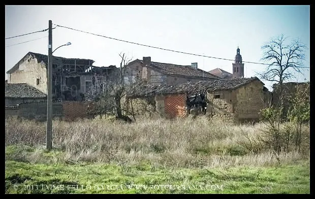 La ruta de los portugueses, que atraviesa diagonalmente la región castellanoleonesa y comunica Europa con el país vecino, es una de las mejores carreteras para conocer los paisajes y las formas de vida de los pueblos y hábitats de este territorio. Desde Fuentes de Oñoro hasta Miranda de Ebro y más allá, la vieja nacional, que corre paralela a la moderna autovía, permite viajar desde las dehesas salmantinas hasta el angosto paso hacia las provincias vascas, y en su mayor parte discurre por llanuras infinitas jalonadas de pinares, amplios valles y campos de labor que son la mejor tarjeta de presentación de esta meseta cerealista. A lo largo de la ruta aparecen numerosos pueblos, unos más grandes que otros. Hay veces que estos pueblos crecieron al calor del tráfico que generaba la ruta, y otras en que la ruta se desvió ligeramente para comunicar tal o cual pueblo importante. Lo que es indudable es que todos ellos conforman un extraordinario crisol de la tradición urbanística y arquitectónica de Castilla y León. En mis frecuentes viajes entre Salamanca y Valladolid, solía tomar la nacional como alternativa pintoresca a la autovía ya que, aún a riesgo de toparme con algún animal suelto, el placer de conducir durante kilómetros sin más tráfico que el de mi propio coche es una experiencia única, con el añadido de poder acercarme, e incluso atravesar, tantos pueblos en mi camino.