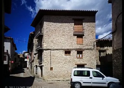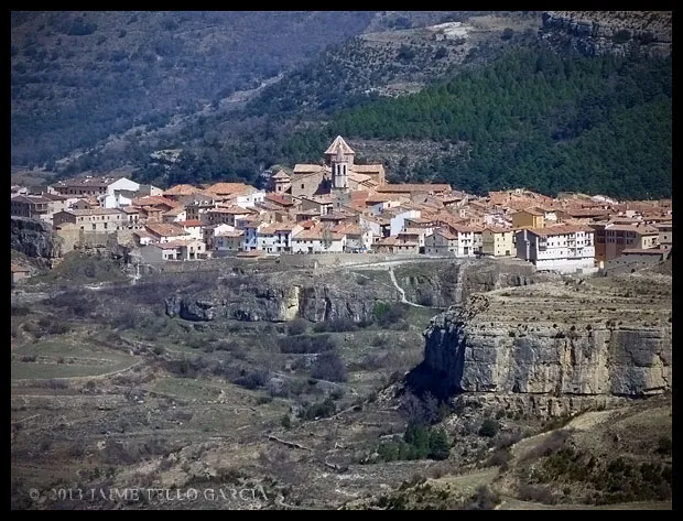 El viejo castillo de Cantavieja parece un navío a punto de precipitarse sobre el cauce del río homónimo, desde la gran altura en la que se ubica este pueblo antaño fortificado. Un emplazamiento excepcional que remite a la intensa historia que ha vivido esta villa templaria, capital del Maestrazgo turolense. Cantavieja está ubicada sobre un largo farallón a más de 1200 metros de altitud, rodeada por sierras que superan los 1500. Es la puerta de entrada a las tierras altas del Maestrazgo, hacia Cañada, Villarroya y Mosqueruela,  y punto de escape hacia la calidez del Maestrat castellonense cercano al Mediterráneo. Es esta una comarca agrícola y ganadera, en la que la vida ha sido siempre muy dura, de clima extremo, aislamiento y hábitat un tanto disperso distribuído en pequeños pueblos y abundantes masías. Cantavieja destaca en la actualidad por su patrimonio y por sus tradiciones como la producción de jamones con dneominación de Origen Teruel, que se ha visto potenciada por la calidad de sus productos y por su difusión a través del creciente sector turístico. Turismo plasmado en casas y hoteles rurales, segundas residencias e incluso nuevos edificios que han surgido en Cantavieja, en La Iglesuela e incluso en pueblos más remotos como Puertomingalvo.