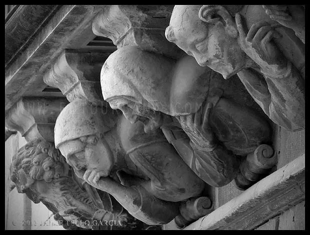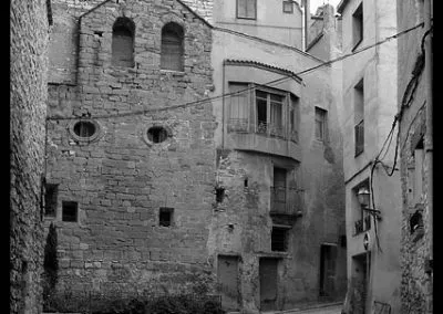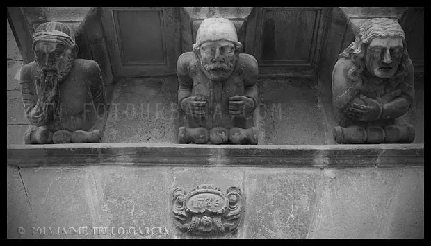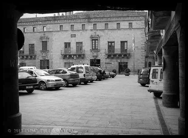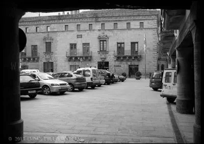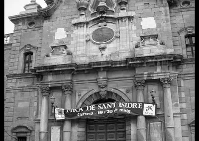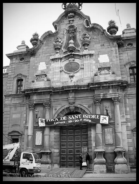 Es Cervera de esos lugares donde un cielo gris e incluso una fina lluvia mejora la experiencia del visitante. La oscuridad de sus calles estrechas, sus soportales y pasadizos, y la reminiscencia medieval de muchas de sus fachadas se ve potenciada por los fríos y neblinosos días de invierno que invitan al paseo en silencio por la historia de sus muros.El casco urbano de Cervera es, en mi opinión, uno de los más bellos de Catalunya y, sin duda, uno de los que mejor guardan la esencia de su pasado medieval. Llegué a Cervera en tren, en un largo viaje en regional desde Barcelona. La estación se encuentra en lo alto del páramo, por lo que al llegar a la ciudad no es posible imaginar el fantástico paisaje urbano que se precipita sobre el barranco del Ondara. No obstante, ya en el entorno del ferrocarril asoman importantes edificios que anuncian la importancia de esta plaza, como el Sindicat. Sigo con mi paseo y progreso por su callejero, y tomo la Calle Mayor, y en mi camino descubro varios hitos imprescindibles para entender la historia de la ciudad: la imponente y singular Universitat; las capillas, casonas y soportales que se abren a lo largo de la calle, que es la espina dorsal del caserío de este viejo sector urbano y, al final de la vía, el premio de la Plaça Major con la Paeria de fabulosos relieves. Tras ella, la Església de Santa Maria y su gran campanario. En la margen derecha, la misteriosa calle Sabater que traslada al visitante a un escenario puramente medieval.