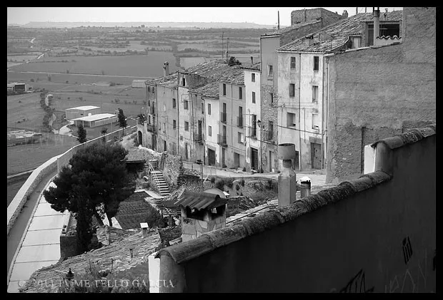 Las murallas y el antiguo castillo rematan por el sur este casco histórico. Por las dos vertientes de la cuerda sobre la que se asienta Cervera caen callejas y casas hasta casi alcanzar el mismo fonfo del valle, generando con ello fabulosas perspectivas sobre el entorno, y a su vez desde el entorno, sobre la ciudad.