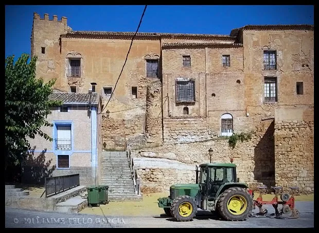 Cetina es una villa de un marcado carácter aragonés, a pesar de encontrarse cercana a la frontera con Castilla. Me llaman mucho la atención las diferencias marcadas que, tan a menudo, se dan en este país nuestro en cuanto a morfología urbana, arquitectura tradicional o en algo tan simple como la torre de sus iglesias, por algo tan banal como los límites administrativos de las autonomías, las provincias o incluso comarcas. Banalidad que en el pasado no lo fue tanto porque esos límites eran fronteras infranqueables entre reinos. Y en el caso de la frontera entre Castilla y Aragón el proceso es más marcado, pasando de la piedra al ladrillo, de los cascos urbanos de perfil bajo y extensos en Castilla, a entramados complejos de calles umbrías y casas altas con sobrado y la abundancia de edificios de ladrillo en Aragón. Cetina es pueblo aragonés en el que impera el ladrillo en sus edificios más destacados. Desde la Autovía del Nordeste se intuye el perfil de la villa al sur y cruzado ya el río Jalón. Sin embargo, resulta difícil apreciar desde la distancia, la magnificencia del conjunto monumental, de su Palacio y su iglesia de San Juan Bautista, que se asoman, ambas, al valle fluvial desde el risco en que se ubican. Cetina es una villa antigua de la Comarca de Calatayud, por la que pasó el mismísimo Cid que tomó su castillo. De hecho Cetina aparece citada en el Cantar del Mio Cid. La plaza es prontamente reconquistada por Alfonso I el Batallador, y recibe fuero otorgado por Ramón Berenguer IV en el siglo XII. Situada en la frontera del Reino de Aragón, esta villa de señorío, cae en una larga decadencia cuando de produce la unificación de reinos, aunque sigue jugando un papel relevante al asentarse sobre el camino que comunica la meseta con el Valle del Ebro y el nordeste peninsular, aunque la mejora en las comunicaciones le hiz perder relevancia al desplazar la nacional y la autovía al lecho del valle. Cetina ha logrado un cierto renombre por otro hecho histórico gracias al gran Francisco de Quevedo, literato universal que celebró su casamiento en la capilla del palacio de Cetina el 26 de febrero de 1634, con Doña Esperanza de Mendoza, Señora del lugar.