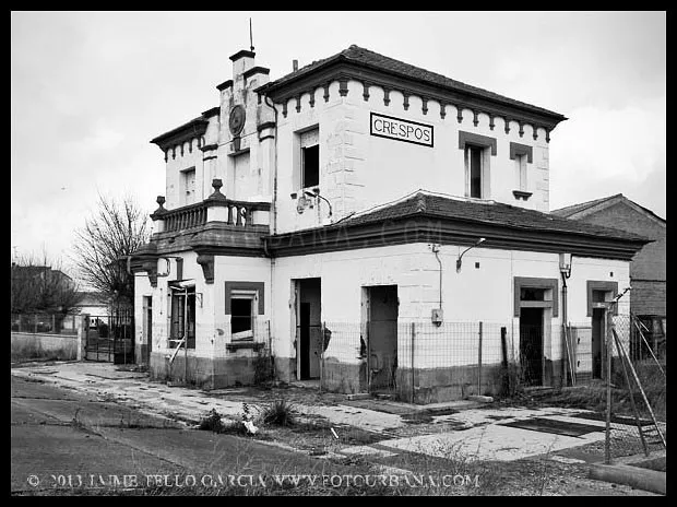 CRESPOS Crespos es un precioso pueblo mudéjar de la Moraña abulense. Y sería uno más si no fuera por la excepcional belleza de su vieja estación y el silo que la completa. En esta tierra seca y deforestada, territorio de los más inhóspitos y fascinantes de la vieja Castilla, contar con el ferrocarril fue durante largo tiempo garantía de desarrollo y dinamismo para el pueblo. Lamentablemente hoy sólo podemos sentir nostalgia por un tiempo que no volverá, del que al …
