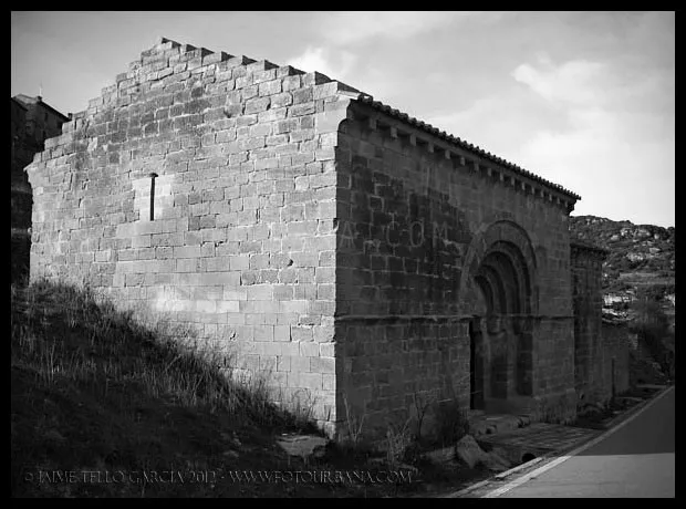 En un destacado promontorio que domina el valle formado por el río Arba de Biel en su camino hacia el sur, se extiende el enrevesado callejero del viejo pueblo de El Frago, cuyo topónimo parece provenir precisamente de la fragosidad del terreno sobre el que se asienta. Destacan en sus calles el románico de sus edificios religiosos y los testimonios de la importante comunidad judía que aquí habitó hasta su expulsión, presencia por otra parte muy común en los pueblos que forman esta bella comarca de las Cinco Villas zaragozanas. El románico de su iglesias, de San Nicolás de Bari del siglo XII, y de San Miguel, preciosa ermita románica de la misma época ubicada en la subida hacia el pueblo.
