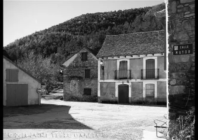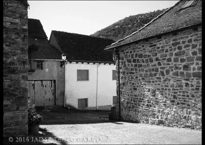 Me muevo por el territorio más antiguo del reino aragonés, valles ansotanos singulares en cultura y tradiciones. El poso de su historia se siente en un paisaje modelado por la dureza del clima y por la laboriosidad de sus sufridos habitantes. Muchos de ellos, como decía, partieron, y otros, los menos, quedaron, y aquellos con su retorno veraniego, y estos con su día a día mantienen las casas de Fago en un estado de conservación excepcional. Sin duda se ha beneficiado el pueblo de la corriente turística que ha invadido estos valles en las últimas décadas, y que con ello ha conseguido mejorar sus infraestructuras y el mantenimiento de su caserío. Turismo cultural, de aventura y gastronómico en el corazón de los Pirineos. En Fago abunda la piedra, en sus calles y en sus fachadas. Algunas casas se encuentran coronadas por chimeneas troncocónicas típicas de la zona, y por unos bellísimos balcones de madera. En el extremo sur del pueblo se levanta la Iglesia de San Andrés, obra del siglo XVI que conserva un tímpano románico de un templo anterior. Tras ella está la subida al cementerio, desde cuyo entorno se domina todo el valle angosto y la extensión de un casco urbano compacto por necesidad y primorosamente bello.