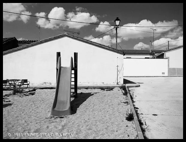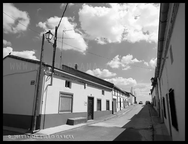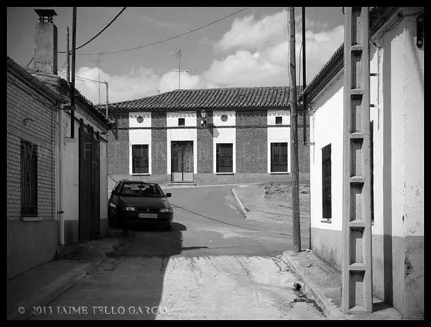 Decenas de veces he avistado el perfil de Gimialcón, asomado con discreción sobre la loma en que se asienta, en mi camino por la flamante autovía entre Madrid y Salamanca. En la época en la que vivía en Salamanca, me propuse que en alguno de mis viajes a Madrid, que por entonces se hacían por la vieja nacional, me detendría a conocer y retratar los pueblos que jalonan la vía. Esperé a 2014 a dar el paso, y en una sola tarde, una de esas interminables tardes de junio, visité todos los pueblos entre Gimialcón y Aveinte. Comencé por Gimialcón. Descubrí un pueblo pequeño, que debió correr mejor suerte. No llegan a cien los vecinos que pueblan sus casas. Es triste comprobar que fueron casi quinientos en sus tiempos de esplendor, cuando los niños corrían por sus calles. Aquellos niños traen hoy a sus hijos y nietos al pueblo, y le devuelven la vida aunque sea de forma efímera.