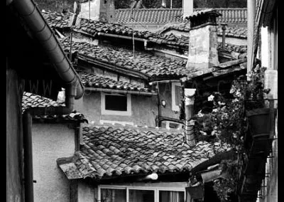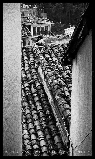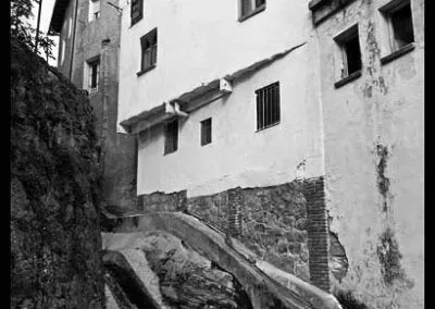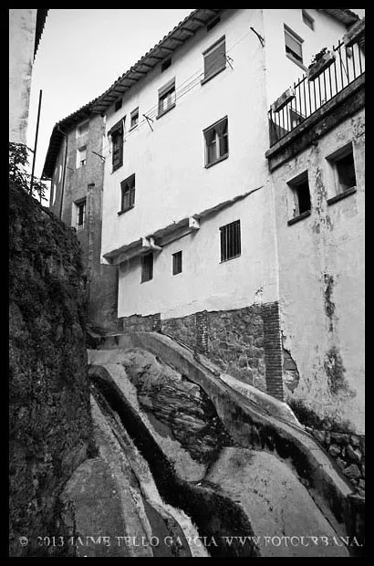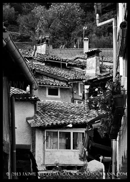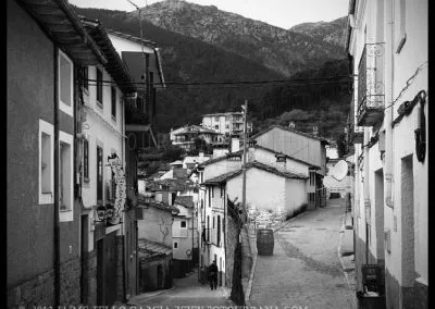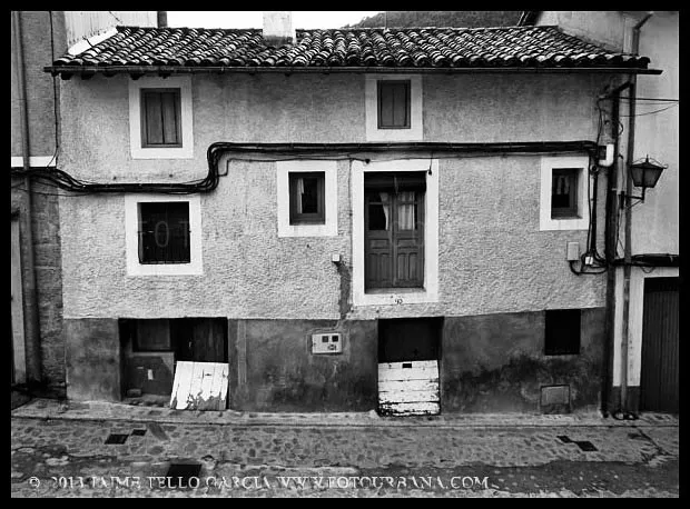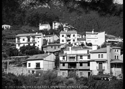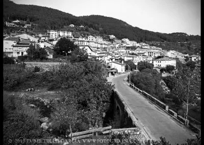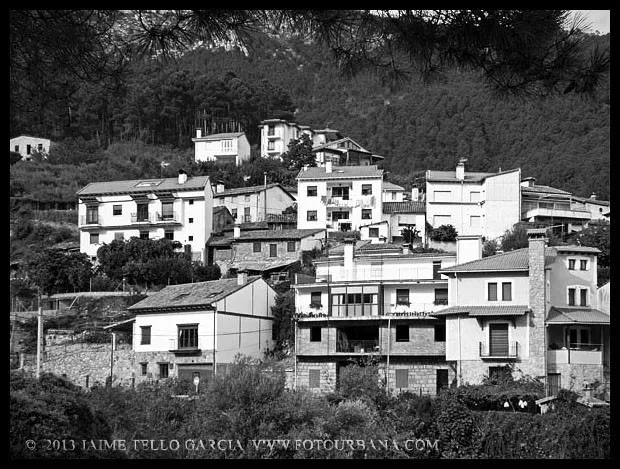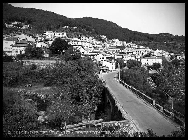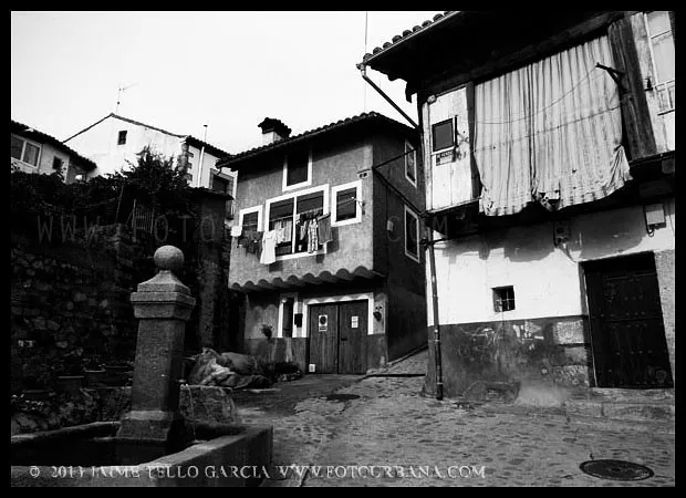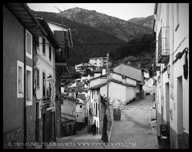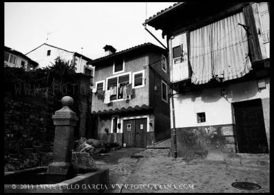 Lo primero que hay que decir sobre Guisando es que los famosos toros no están en Guisando. Y el primer sorprendido fuí yo, que desconocía tal cosa hasta que me acerqué a estas tierras abulenses del valle del Tiétar. A pesar de no contar con el valor patrimonial de los berracos, el pueblo de Guisando cuenta con un patrimonio natural e histórico que justifica sobradamente la visita. La ubicación del pueblo, en un profundo y remoto valle en la cara sur de Gredos, junto a la garganta del río Pelayo que al pasar por el pueblo acumula cerca de mil metros de desnivel, ya es de por sí un espectáculo en el que agua y piedra juegan a formar un paisaje único de cumbres que parecen tocar el cielo. El pinar que también cae desde las cimas hasta la misma villa de Arenas de San Pedro, rodea al pueblo y en cierto modo empequeñece su blanco caserío, hasta el punto de aparentar ser más pequeño de lo que sus casi 600 habitantes podrían sugerir que además, supongo, en verano se multiplicarán con los hijos del pueblo y los visitantes que llegan hasta aquí a disfrutar del clima benigno y los paisajes asombrosos. Además, el entramado urbano que juega con las rieras y arroyos que caen de la montaña y con las curvas de nivel sobre las que se asienta el callejero se complementa con un catálogo extraordinario de arquitectura popular que se ha conservado de forma notable hasta nuestros días.