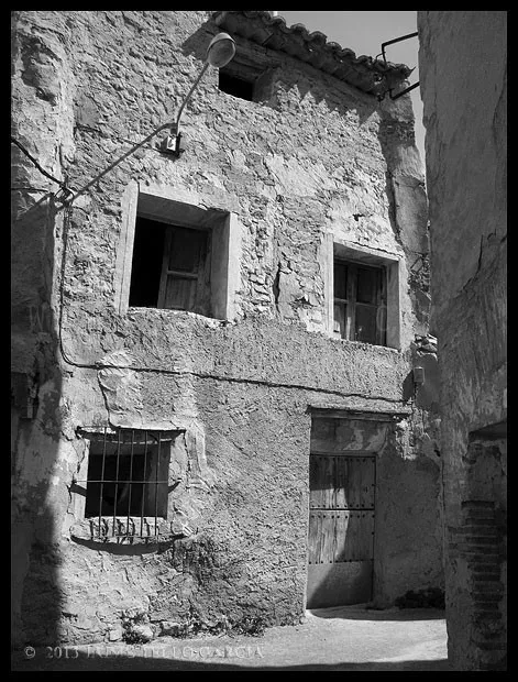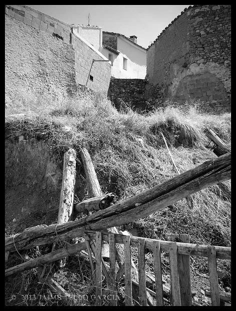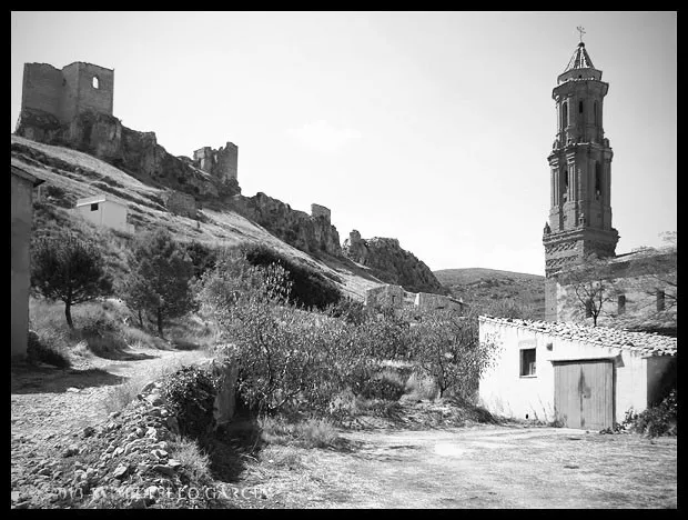 Huesa del Común es un pueblo solitario y bellísimo iluminado por unos cielos alborotados por la conjunción de tierras, de climas y de regiones aragonesas que aquí se encuentran. Paseando por sus calles aún parece que se pueda vivir a espaldas de la civilización, tal es la desolación que sentí. Una sensación reconfortante y extraña que se enfrenta a la modernidad salvaje en la que vivimos. Huesa es un pueblo de las Cuencas Mineras de Teruel. Un pueblo escondido, perdido como pocos que yo haya visto, en tierras turolenses, justo en el borde donde tocan las tierras altas mudéjares, al sur, y las amplias penillanuras casi desérticas que ya parecen buscar el Ebro y Zaragoza. Huesa es famosa por ser lugar de escalada, y es fácil entenderlo ya en la distancia por el paisaje abrupto que resguarda al pueblo, agujas y muelas sobre las que se levanta su viejo y arruinado castillo. Desde las zonas más altas del pueblo, el paisaje que se abre hacia el norte ya recuerda más al cereal y al yermo de las tierras de Belchite o el Bajo Martín que a las sierras, pinares y a la exuberancia del interior de su provincia. El castillo de época musulmana de la vieja Ossa, que tras la reconquista se convertiría en cabeza del "Común de Huesa", ha vigilado durante siglos el amplio horizonte que se abre a sus pies, y la atalaya ha vivido mil y una escaramuzas con la villa de Huesa y su tierra siempre en juego. Tras pasar a la familia Luna y al dominio de Daroca, Huesa compró de nuevo su independencia pasando a ser realengo de Sesma de Huesa. En el siglo XIX se arruina definitivamente su castillo y la villa entra en un largo periodo de decadencia potenciada por su aislamiento y las difíciles condiciones de vida en esta tierra de clima y fertilidad algo hostil. La masiva emigración de la segunda mitad del siglo XX redujo su población en más de un 70% hasta los apenas 100 vecinos con los que Huesa ha entrado en el siglo XX. Como en tantos otros casos, quizá sea ese abandono el que esté detrás de la extraordinaria calidad de su recinto urbano, plagado de placetas, portales y en su extremo sur, la Iglesia de San Miguel, preciosa joya barroca de torre de reminiscencias mudéjares que es punto de encuentro y referente del pueblo. A sus pies, como regalo de despedida, tuve la suerte de toparme con un rebaño de cabras montesas que habían acudido en busca de comida y que, asustadas, corrieron al percatarse de mi presencia, a adentrarse en las profundidades de la sierra.