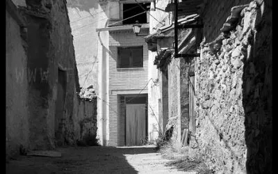 Uno esperaría que tras el nombre de este pueblo se escondiera la historia de una vieja, quizá una bruja, que habitara aquí en tiempo pasado. Contra lo que pueda suponerse, el topónimo de La Hoz de la Vieja sí tiene relación con una hoz, en la que se asienta el pueblo, pero no con esa supuesta vieja, sino con la castellanización del rubiello, material rocoso rojizo que abunda por estos lares y que dió nombre a la antigua «Foz Rubiella». La Hoz es pura ubicación, una ubicación excepcional, un pueblo colgado a ambos lados de la profunda garganta que el Armillas forma aquí y cuya visión, desde el sur, es puro espectáculo de arquitectura tradicional y geología, y un paisaje rural aragonés en peligro de extinción. En lo alto, el torreón medieval de La Hoz de la Vieja mantiene su porte secular y vigila el estrecho paso que abre el río en este pedazo de tierra. Tan implicado está el río en la vida del pueblo que más de un susto se han llevado los hozviejanos ante avenidas que han arrasado con la parte baja de su casco urbano. Al trepar por la pronunciada ladera rocosa sobre la que se asienta, llena de vericuetos, recodos y escaleras, la vista se abre hacia el sur y los tejados se iluminan con la luz del sol tímido de las tierras altas turolenses. Pasando ante su Iglesia de Nuestra Señora de las Nieves, de trazas góticas, o de la lonja de su ayuntamiento, uno tiene la sensación de haberse perdido en un tiempo de caballeros, de batallas y de la dura vida de los agricultores que aquí moraron y que, en su mayoría, marcharon para siempre durante el siglo XX en busca de una vida mejor.