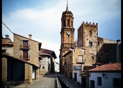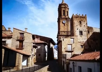 En los confines del Maestrazgo turolense y junto al camino hacia tierras de Castellón se yergue, altiva y orgullosa, la intensa historia y la belleza inconfundible de La Iglesuela del Cid, bellísimo pueblo medieval en el que la piedra ha tomado el protagonismo. Conjunto Histórico Artístico desde 1982, La Iglesuela forma junto a Cantavieja y Mirambel el triunvirato de pueblos icónicos, pueblos patrimoniales y turísticos del Maestrazgo de Teruel, sin que el resto de pueblos de la comarca desmerezcan en belleza y atractivo. El casco urbano de La Iglesuela está claramente diferenciado en dos sectores, a ambos lados del Barranco del Canto, sobre cuyo lecho se asientan numerosas huertas y corrales formando un peculiar paisaje de bancales de piedra seca. Orientado a la solana de la tarde, cuya luz ilumina la belleza de sus fachadas, en el barrio que se alza al oriente predomina la arquitectura popular de grandes casas altas y encaladas con espacio para el almacenaje de productos agrícolas. Enfrentándose al barrio popular y agrícola, en la orilla occidental del barranco se levanta el recinto histórico amurallado, de forma triangular, que encierra las joyas del patrimonio local. La Iglesia de la Purificación, del siglo XVII, con su magnífica torre que gobierna la redolada y las trazas góticas de sus naves; el conjunto civil del Torreón de los Nublos y el ayuntamiento gótico, testimonio de la antigua fortaleza que defendía esta plaza; los restos de la vieja muralla, antiguos arcos y lienzos que luchan contra el tiempo; y sobre todo el excepcional conjunto de arquitectura civil y popular, grandes casonas y palacios y calles en las que se suceden preciosas y grandes casas que fueron de los vecinos del pueblo y siguen en pie. Sin duda, uno de los mejores cascos urbanos del Maestrazgo, de Teruel y de Aragón, que se mantiene casi intacto y de una belleza que, por si solo, justifica la visita a La Iglesuela del Cid.