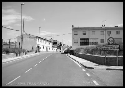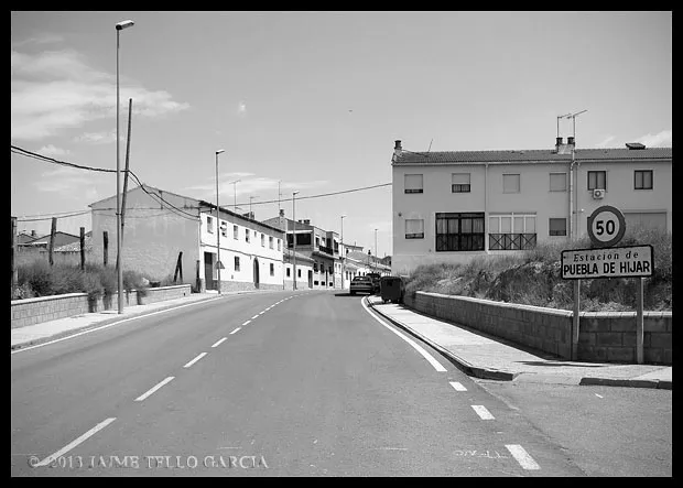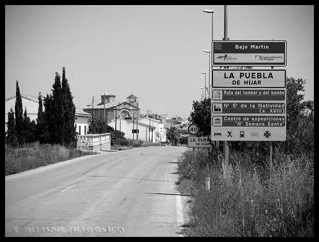Recuerdo la visita a La Puebla de Híjar como un acontecimiento especial en mi vida viajera, ya que llegué hasta aquí caminando desde Híjar, en pleno mes de julio, por la carretera estrecha que comunica ambos pueblos, lo cual en si mismo es una experiencia que me permitió disfrutar de los paisajes casi desérticos que se abren entre los dos pueblos. Además, había llegado en autobús a la propia Híjar desde Zaragoza, y salí de La Puebla en uno de los regionales que se dirigen a Barcelona. No era mi intención partir de La Puebla a una hora temprana, ya que pretendía tomar el tren de la tarde en Samper después de haber visitado este último, al que debería llegar también caminando. Pero la canícula y el cansancio pudieron con mi ánimo, acelerando la marcha y haciendo un rápido recorrido por La Puebla para poder tomar el tren del mediodía. Samper tuvo que esperar un par de años más.