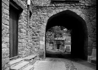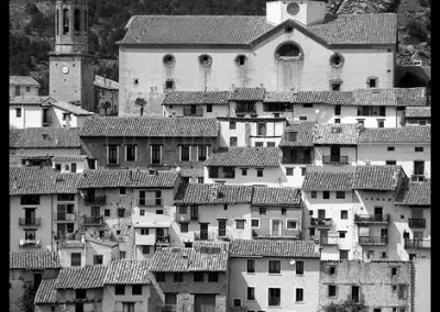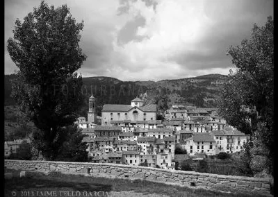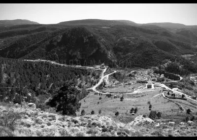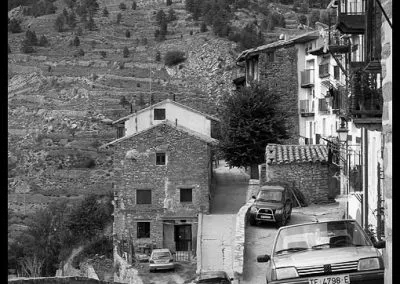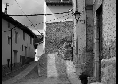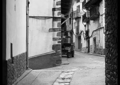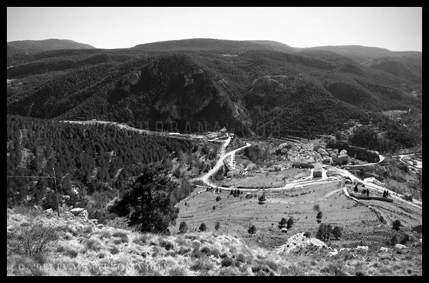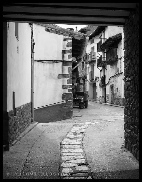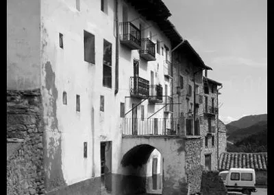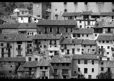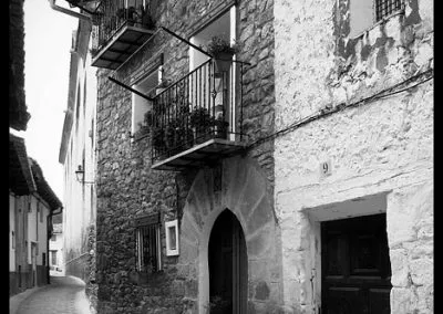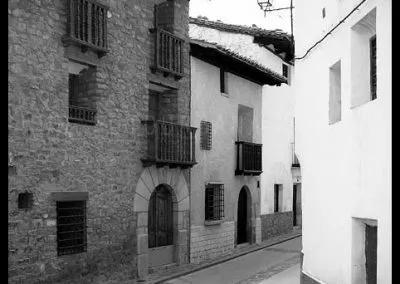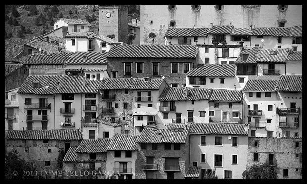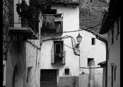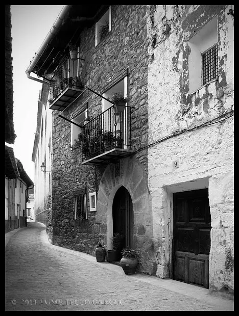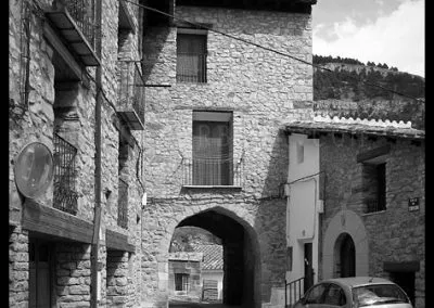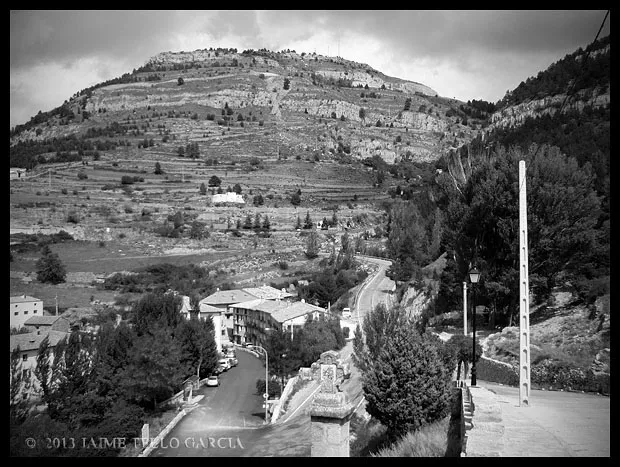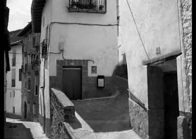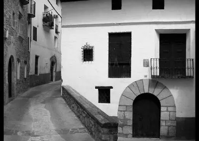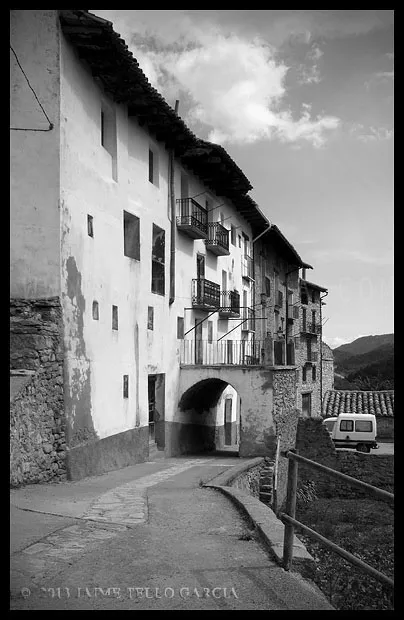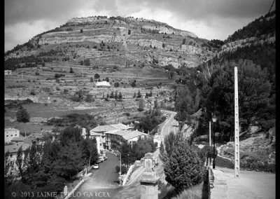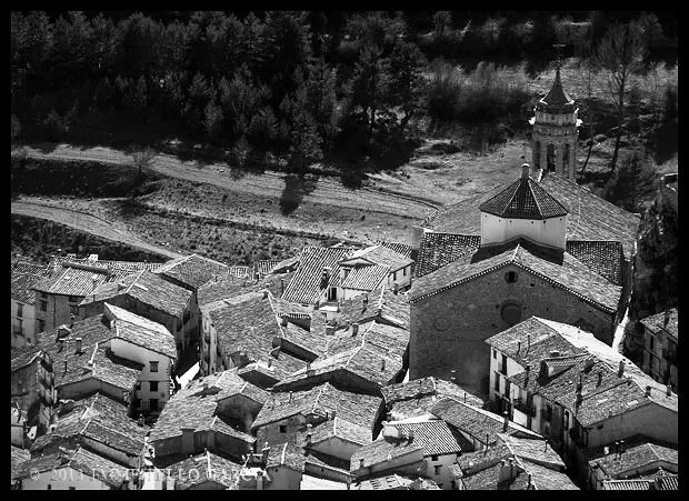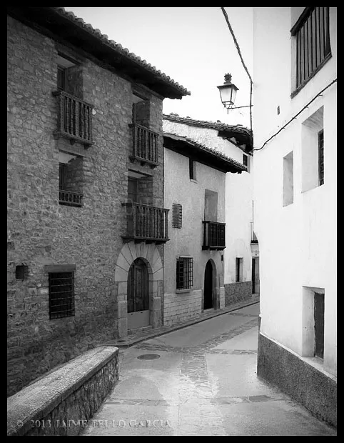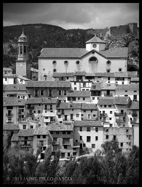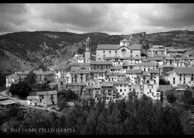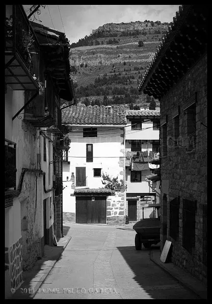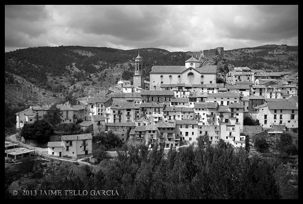En el sector más agreste de la comarca turolense de Gúdar-Javalambre se alza la villa de Linares de Mora, sobre un promontorio que viniendo por carretera desde Rubielos destaca sobre el valle del río Linares con su caserío aterrazado coronado por su viejo castillo y por la Iglesia de la Inmaculada. Y si la escena desde la Ermita es espectacular, el espectáculo viniendo desde el norte es total. En la carretera de Mosqueruela, algunos kilómetros y algunas curvas antes de llegar a Linares, alguien sabio ha habilitado un mirador para gozar del precioso paisaje resquebrajado del valle, con el pueblo sobresaliendo pero allí, tan abajo, que nadie diría que minutos más tarde disfrutaremos de la estampa elevada de su arquitectura sobre el cerro. La trama urbana de Linares, adaptada perfectamente a la roca sobre la que se ubica, se extiende por las laderas formando una punta de flecha casi perfecta orientada a la solana. Alberga uno de los conjuntos monumentales mejor conservados y sorprendentes de la península y que, me temo, debido a su remoto emplazamiento y al desdichado desconocimiento que, en general, se tiene de la provincia de Teruel, corra el peligro de pasar desapercibido. Linares es una villa amurallada bajomedieval gobernada por el castillo de siglo XIII y por su iglesia barroca, completado el conjunto urbano por un extraordinario muestrario de arquitectura tradicional encalada, muy homogéneo, que resulta en una imagen de postal del pueblo desde la ermita, con sus fachadas blancas sobre el callejero a distintos niveles, y las agujas del campanario exento y la fortaleza rematando la silueta. Linares, un pueblo emocionante y excepcional.
