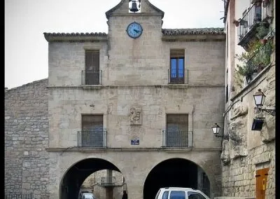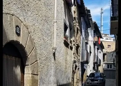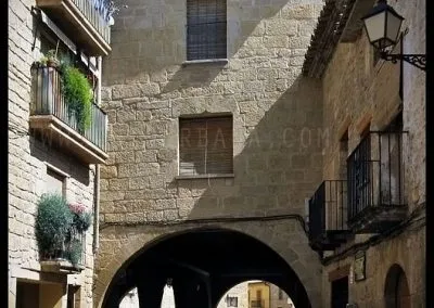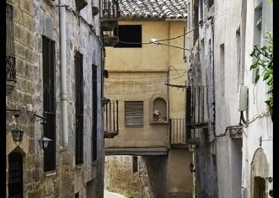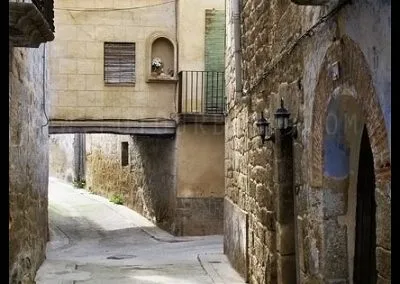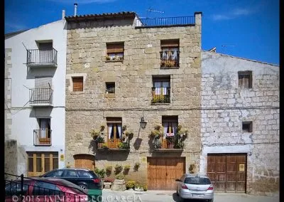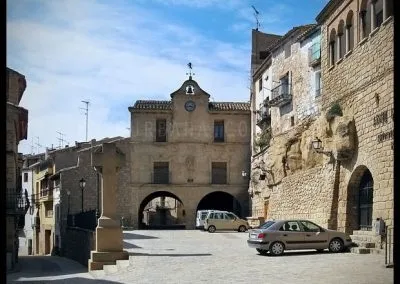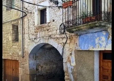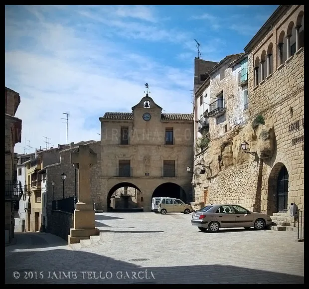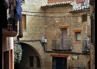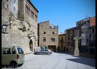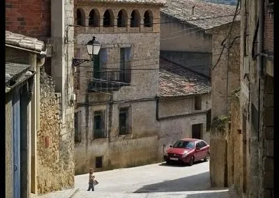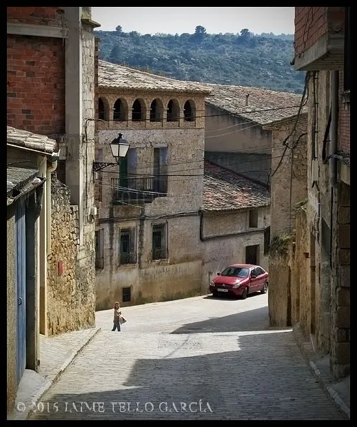 Mazaleón es una de las villas más septentrionales y remotas de la fabulosa tierra del Matarraña turolense. El río, el Matarraña riega el paisaje fascinante que se presenta frente a Mazaleón, un valle muy marcado y un lecho amplio que denota la magnitud de las riadas periódicas que sufre este precioso río mediterráneo. Frente al caserío y en la otra orilla se alza la Ermita de San Cristóbal, situada en lo alto del farallón que cierra el meandro en que se sitúa el pueblo y que responde a esa tradición constructiva tan marcada de las grandes ermitas extramuros del Bajo Aragón. El paisaje de olivos, de almendro, con algunos frutales y manchas de pinar, envuelve el casco urbano denso y medieval de Mazaleón que se dispone en torno a su Iglesia de Santa María la Mayor, del siglo XIV, excepcional muestra de arquitectura religiosa gótica, algo extraña en la tradición barroca bajoaragonesa. A sus pies se abre el conjunto excepcional de la Plaza Mayor y la Casa Consistorial, en origen medieval y muy transformada en el siglo XVIII, con la lonja y el pasadizo que da acceso al sector occidental del casco. Sobre las calles de Mazaleón caen las fachadas de casas solariegas, de viejos hospitales y conventos, con puertas adoveladas, ventanales góticos y la contundencia de la misma piedra dorada que embellece a toda la comarca. Y desde la cota más baja, desde el campo de fútbol, al suroeste, se obtiene la estampa más característica y bella de este pequeño pueblo.