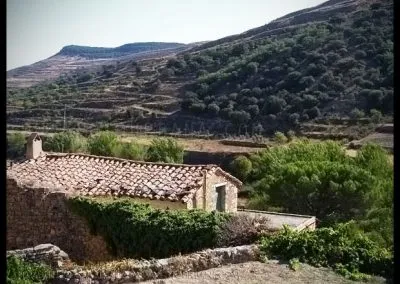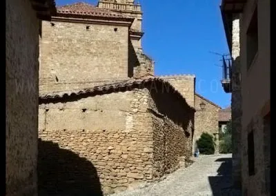 Mirambel es un pueblo turolense envuelto casi por completo por tierras levantinas, escondido en el pequeño valle que forma el río Cantavieja que, en su sorprendente camino hacia el Bergantes y el Ebro, ejerce de frontera natural entre dos reinos. La historia del lugar hunde sus raíces en la Reconquista de estas tierras en el siglo XII, cuando fue encomendado a diversas órdenes militares que dominaron durante siglos el Maestrazgo. Dependiente de Montalbán, de Teruel y de Alcañiz, no es hasta el siglo XIX cuando obtiene ayuntamiento propio y se integra en el partido judicial de Castellote. Villa templaria y sanjuanista, Conjunto Histórico Artístico y Premio Europa Nostra por la labor de recuperación de su patrimonio, el conjunto urbano de Mirambel es de los más bellos de España, de una armoniosidad extraordinaria, en el que todos y cada uno de sus elementos, no sólo los restaurados sino numerosas edificaciones abandonadas o en uso, mantienen la morfología y la funcionalidad con la que fueron concevidos. La muralla que abraza casi por completo a Mirambel, sobre la que se apoyan numerosas casas, cuenta con varios portales entre los que destaca el Portal de las Monjas, cuya celosía de yeso es una de las señas de identidad no sólo del pueblo sino de todo el Maestrazgo turolense. La piedra contundente y omnipresente en sus fachadas, sus palacios y sus viejas casas, en su iglesia y su ayuntamiento del siglo XVI con la característica lonja que tanto abunda por estos lares. Y también en la ruina de su viejo castillo, que brilla bajo el sol con el color dorado de sus reflejos que ejercen de faro en el camino entre algunas de las villas más gloriosas de Aragón y Valencia. Y es que Mirambel queda centrada en una tierra mítica de batallas y caballeros, de reinos y de frontera, del Maestrazgo turolense y castellonense, entre Morella, Castellote y Cantavieja, el epicentro de una tierra maravillosa.