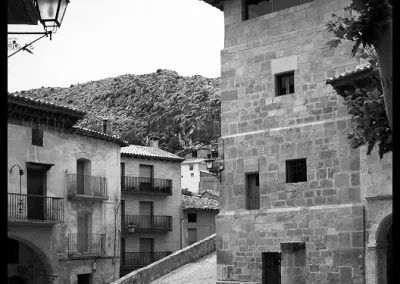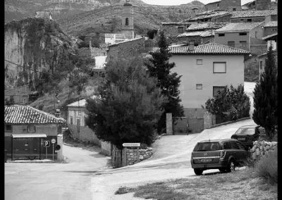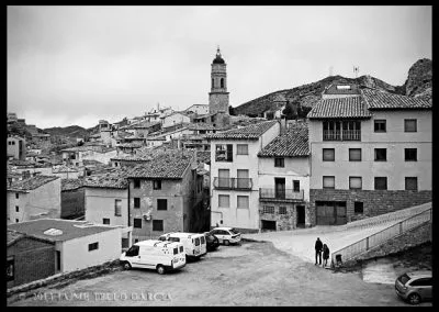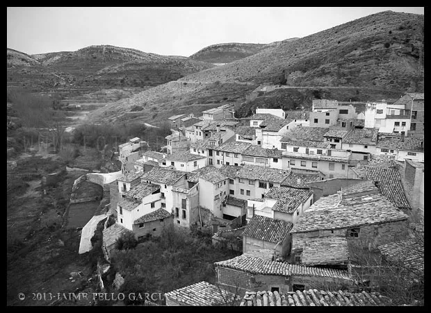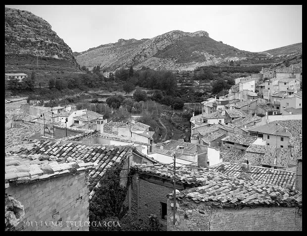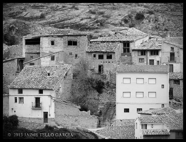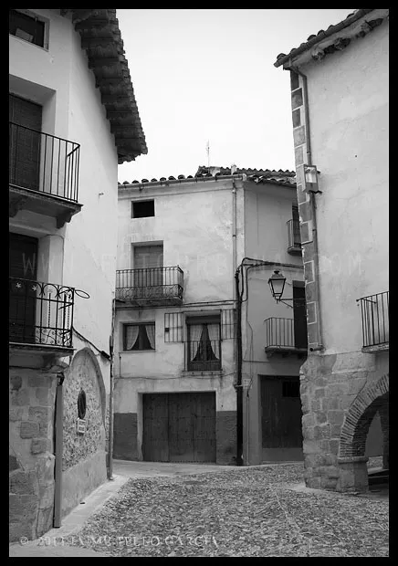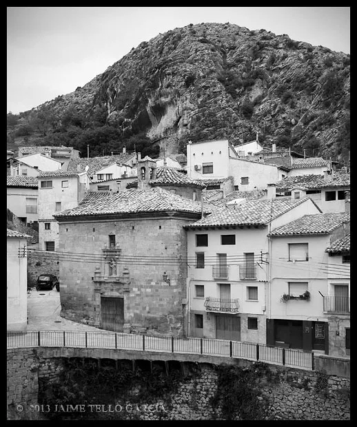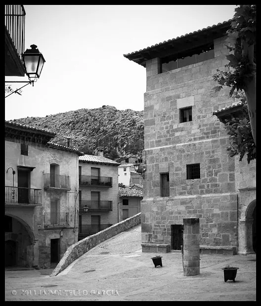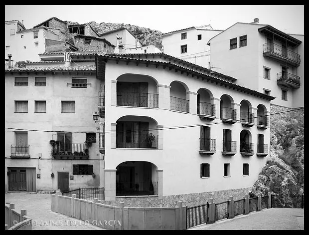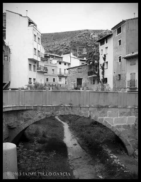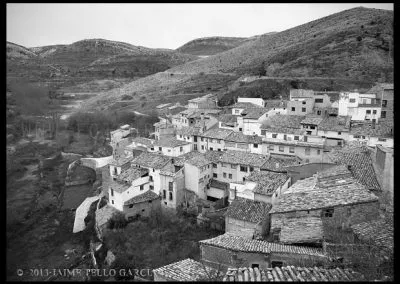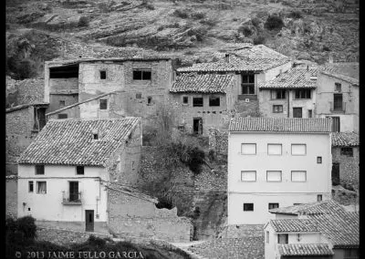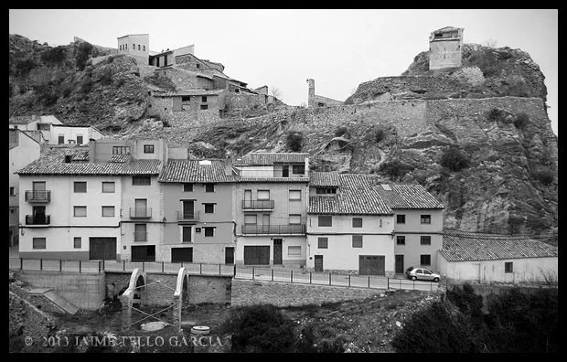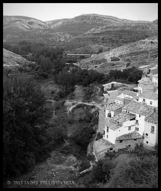 Un arroyo atraviesa el casco urbano y cae por el tajo que se precipita hacia el Barranco de las Fuentes, que poco más allá, hacia el norte, tributará al Guadalopillo. El arroyo forma el meandro rocoso sobre el que se asienta Molinos. En lo más alto despunta la torre exenta, el campanario de la iglesia que hace las veces de mirador. Las callejuelas serpentean por las laderas, aquí y allá, formando una estructura urbana muy compacta de calles sombrías y altas fachadas. Tejados que se dan la mano y protegen la difícil vida de sus moradores en este lugar frío y expuesto que, después de siglos de avatares, luchas y calamidades conoce en la actualidad un largo periodo de bienestar asociado al auge del turismo rural y cultural que ha invadido las tierras del interior aragonés. Pura vida y pura magia de roca y esperanza en uno de los rincones más bellos de España.