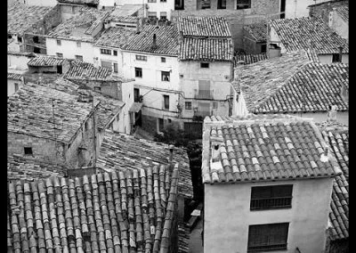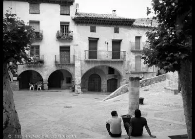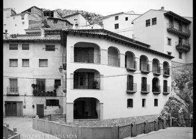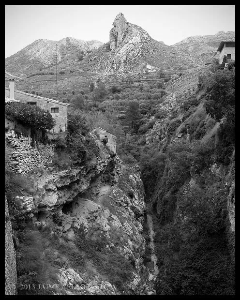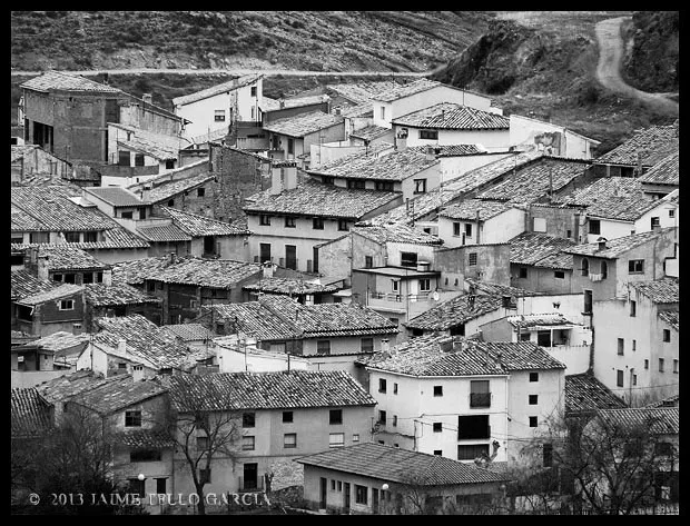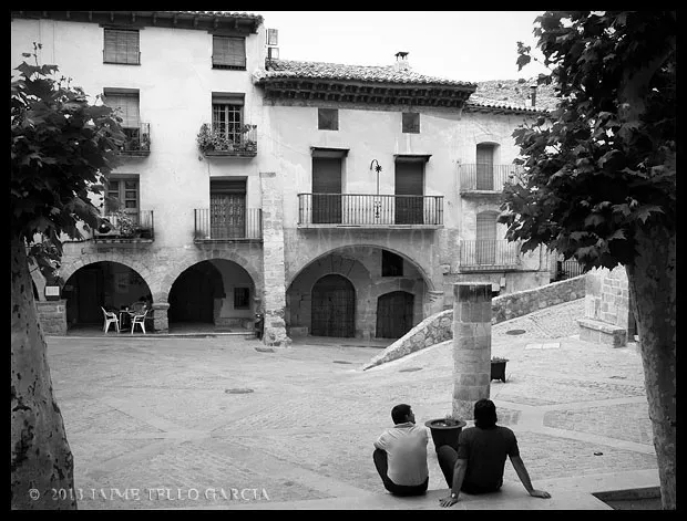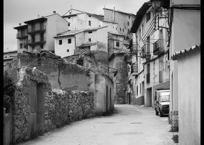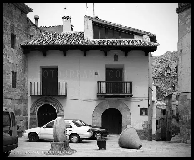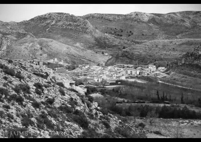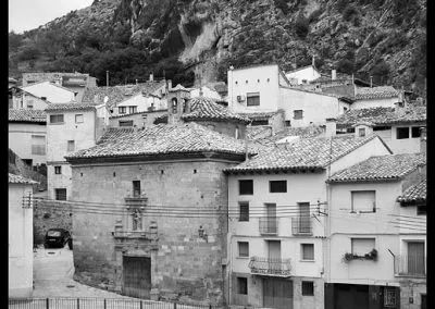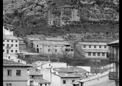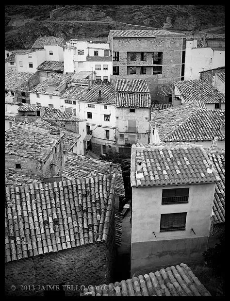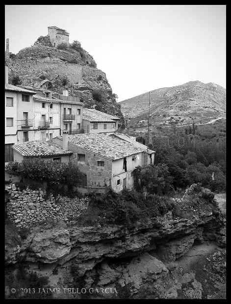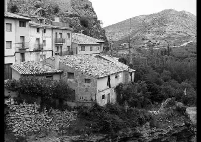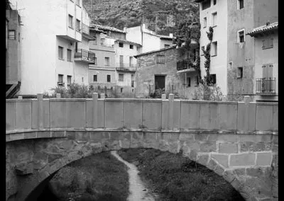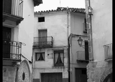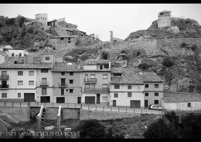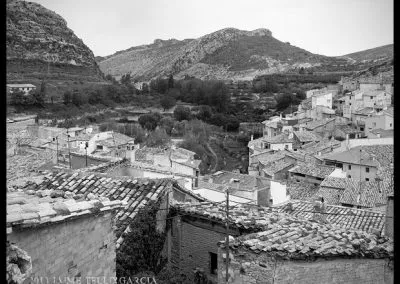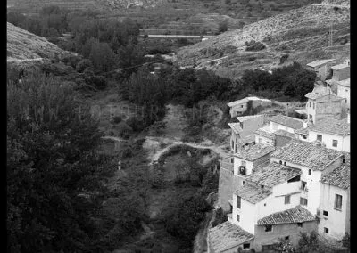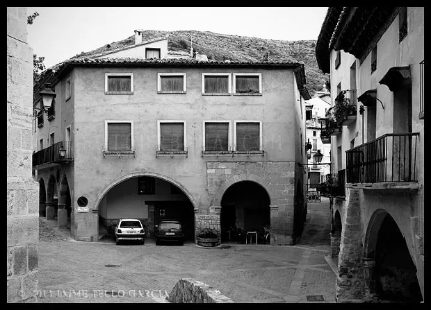 Un arroyo atraviesa el casco urbano y cae por el tajo que se precipita hacia el Barranco de las Fuentes, que poco más allá, hacia el norte, tributará al Guadalopillo. El arroyo forma el meandro rocoso sobre el que se asienta Molinos. En lo más alto despunta la torre exenta, el campanario de la iglesia que hace las veces de mirador. Las callejuelas serpentean por las laderas, aquí y allá, formando una estructura urbana muy compacta de calles sombrías y altas fachadas. Tejados que se dan la mano y protegen la difícil vida de sus moradores en este lugar frío y expuesto que, después de siglos de avatares, luchas y calamidades conoce en la actualidad un largo periodo de bienestar asociado al auge del turismo rural y cultural que ha invadido las tierras del interior aragonés. Pura vida y pura magia de roca y esperanza en uno de los rincones más bellos de España.