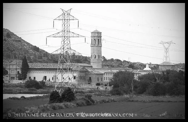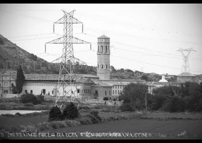 Resulta por tanto una gratísima sorpresa toparme con este gran edificio en la misma orilla de un Ebro inmenso que busca el remanso de los muros de Caspe y Mequinenza. El caserío y las torres de Escatrón se enfrentan en la otra orilla, en la margen derecha, aunque por caprichos administrativos el monasterio de ubica en el término de Sástago. Cercano está el puente sobre el Ebro que brinda una espléndida panorámica sobre el lugar, sobre el río y Escatrón y sobre la fantasmagórica central eléctrica que ocupa todo un meandro.