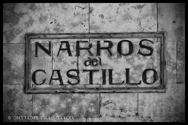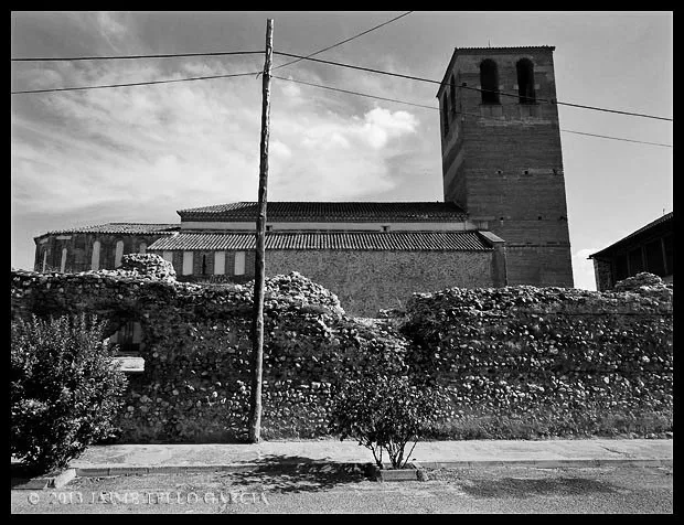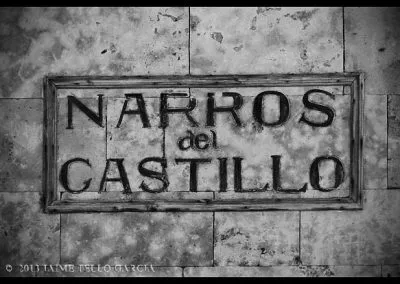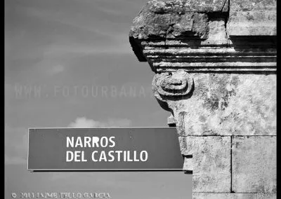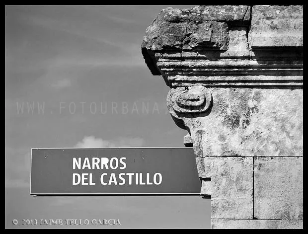 El caserío y la torre de la Iglesia de Narros del Castillo despuntan entre las suaves colinas morañesas cercanas a la nueva autovía. Entre la carretera y el pueblo se atraviesa, de improviso, la vía férrea que comunica Ávila con Salamanca y que mantiene su servicio por no se sabe cuanto tiempo más. La electrificación de la vía por Medina amenaza el paso del tren y la parada en el pueblo de un único convoy diario. La estación mantiene su porte en buen estado de conservación y junto a ella, unos cuantos silos de lo más fotogénico bajo el sol de una cálida tarde de verano. A espaldas del edificio se abre un campo infinito que toca en su horizonte con el perfil de las sierras abulenses. El ferrocarril trajo prosperidad y con lamento sirvió de salida para los tantos narreños que buscaron su futuro en la ciudad. Menos de doscientos vecinos habitan sus casas en los primeros años del siglo XXI, lejos de los más de ochocientos que alcanzó en los años 60 del siglo XX. Muchos de los que marcharon vuelven por San Juan y la Merced, fiestas que abren y cierran el verano, o por las Águedas, tradición profunda en el sur de Castilla. Los antiguos vecinos, los hijos y nietos del pueblo vuelven entonces a pasear por sus calles, a disfrutar de sus viejas casas y de las relaciones que se han tejido durante décadas. Y mantienen la memoria de un pueblo con más de ocho siglos de poblamiento. Naharros de Bebán es el topónimo del primer asentamiento, allá por el siglo XIII, y que hacía referencia a una "puerta fortificada". Algo posterior es la obra de la Iglesia de San Juan Bautista, arte magnífico románico-mudéjar que ha dado gran fama a la comarca de la Moraña, construida enteramente en ladrillo al igual que otros edificios del pueblo que manifiestan la tradición constructiva medieval. El ábside de tres pisos y doble arquería es el paradigma de esta técnica y se repite en un buen número de pueblos ubicados entre Arévalo y Peñaranda. El edificio se alza sobre las ruinas de una antigua fortaleza, levantada en canto y argamasa en la cota más elevada del casco urbano, dominando el amplio territorio que se abre a sus pies. Desde la torre, erigida en el siglo XVI, se gobernaba a buen seguro hasta la frontera con el viejo reino de León, cuyas luchas con Castilla causaron no pocas escaramuzas en este lugar. A los pies del conjunto iglesia-fortaleza se abren las calles que estructuran el casco urbano de Narros, a las que se asoman edificios de diversos estilos. El ladrillo abunda, al igual que el encalado, y algunas casas modernas e impersonales adornan con su presencia el conjunto heterogéneo e indican la persistencia de algunos narreños por enraizar en su pueblo. Lo más emocionante del paseo por Narros es poder disfrutar de la calma que transmite la contundencia de sus campos salpicados por los escasos árboles que sobrevivieron a la leyenda visigoda: la ardilla que cruzaba la península de rama en rama hoy lo tendría algo más difícil por estas tierras, y sin embargo la desgracia del animal ha generado un paisaje fascinante que es pura Castilla.
