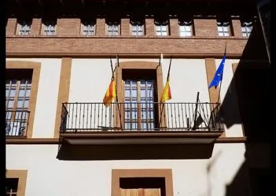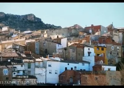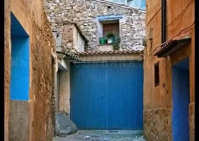 El pueblo se estructura por tanto en dos ejes, Mayor y Baja, cosidas por un conjunto innumerable de callejas, pasadizos, escaleras y recodos que trepan hacia la parte alta. Conserva algunas casonas reseñables que mantienen sus viejos escudos, entre las que destaca la Donjuana, bellísimo caserón renacentista aragonés del siglo XVI, en la Plaza Mayor, a la sombra del campanario mudéjar de su Iglesia de la Asunción. No acaban aquí ni muchos menos los atractivos de Oliete, ya que es su entorno natural el gran protagonista, con los estrechos de Cueva Foradada donde ahora se ubica un gran embalse, o las minas que se encuentran en su término, o la Sima de San Pedro, meca de geólogos, escaladores y amantes del paisaje. Y los restos de antiguas civilizaciones en forma de pinturas rupestres o poblados íberos. Un crisol de arte, historia y naturaleza en el corazón de Aragón, en el tránsito entre las yermas y romas sierras que preceden al gran Ebro, y las tierras altas de Teruel. Y marché de Oliete, en efecto, deslumbrado ante su belleza y su ubicación imposible, luchando por sostenerse en la abrupta ladera por la que trepa su caserío.