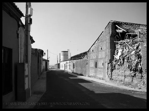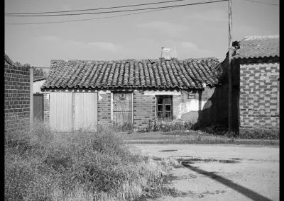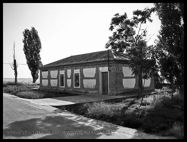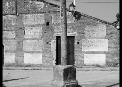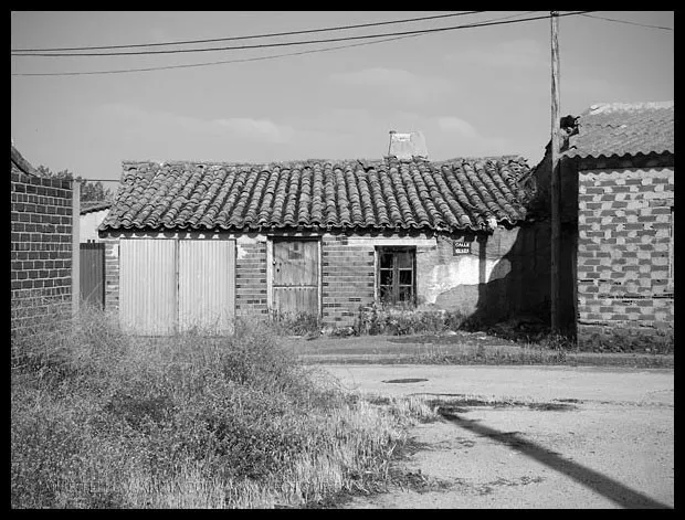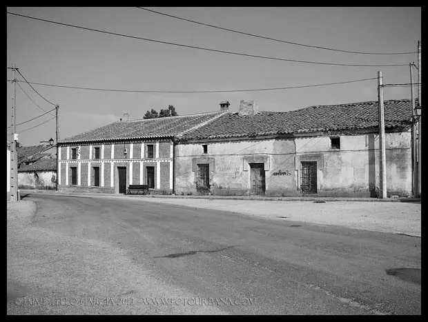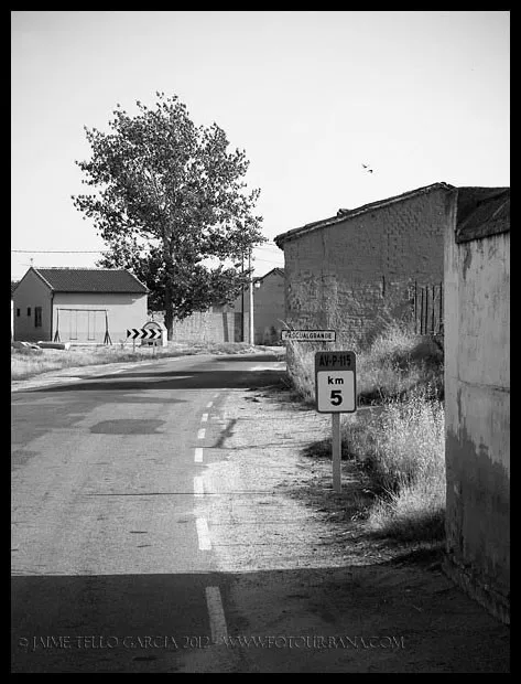 Pascualgrande fue uno de los primeros pueblos que visité con ánimo de fotografiarlo profusamente, y por ello le guardo un gran cariño. Quizá fuera la luz del limpio atardecer del verano castellano lo que llamó la atención de mi objetivo, o pudo ser su carácter inequívocamente rural, no lo sé, pero cada vez que recuerdo aquella visita lo hago con mucho afecto y nostalgia. Pascualgrande es muy pequeño, no tiene ni ayuntamientopropio, pertenece al de Crespos. Acabé allí por casualidad, conduciendo entre Crespos (del que me atrajo su preciosa estación) y Fontiveros. Para alguien poco inquieto, Pacualgrande no sería más que ese pueblo minúsculo atravesado por una carretera hacia lugares a priori más interesantes. Pero a mí me sedujo su diminuto tamaño y la presencia de ladrillo mudéjar que tanto abunda por estas tierras de la Moraña. Y también, porqué no, la combinación perfecta de vida y abandono que se da en sus calles. En Pascualgrande el tiempo pareció detenerse hace décadas, y eso es algo poco común en un momento en que la vuelta al campo y un mal entendido reflejo de la vida urbana en el entorno rural están desfigurando tantos pueblos. Entiendo que las construcciones tradicionales de muchas comarcas castellanas no fueron de una gran calidad, y su adaptación a la vida moderna es difícil, pero nunca entenderé ese afán de tanta gente de pueblo, que lo primero que hacen al juntar cuatro pesetas es tirar la casa de toda la vida y construir un chalet plenamente urbano, totalmente ajeno a la tradición de la zona y que destruye el paisaje del pueblo para siempre. En Pascualgrande algún ejemplo de esto podremos encontrar, pero lo cierto es que ha conservado un casco urbano excepcional, paradigma de pueblo morañego.