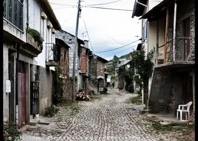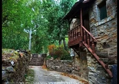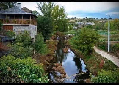 Por la larguísima frontera que separa España y Portugal se alzan, a uno y otro lado de la línea, varios pueblos que, por lo general, no llegan a tocarse. Rihonor es una excepción, ya que forma un continuo urbano a ambos lados del río. Rio de Onor y Rihonor de Castilla, separadas por una raya imaginaria plasmada en un gran cartel. Son dos pueblos pequeños, el portugués más grande que el español, y aunque ninguno de ellos cuenta con grandes monumentos, forman un extraordinario y bellísimo conjunto donde la arquitectura tradicional más auténtica y poco adulterada se combina con los campos de labor y la belleza del curso de agua. Piedra y balconadas de madera, verdes huertos y el valle que abriga al pueblo. Un lugar extraño donde se mezclan países, culturas y gentes, donde desde hace siglos han convivido los vecinos y las actividades económicas, que vivió del comercio entre países durante largos años, y que contó con garitas fronterizas hasta que Schengen acabó felizmente con ellas. Hoy los dos Rihonores son uno solo, donde se puede tomar un café en Portugal y pasear hasta la iglesia en España. Sin duda, un lugar especial.