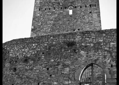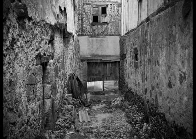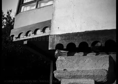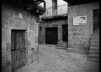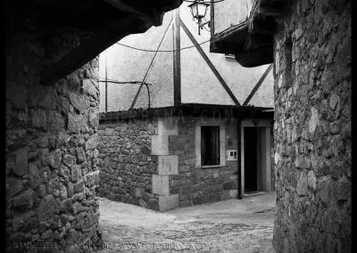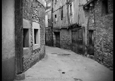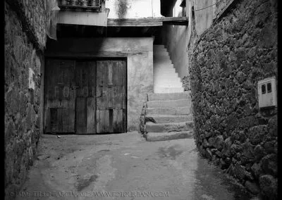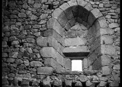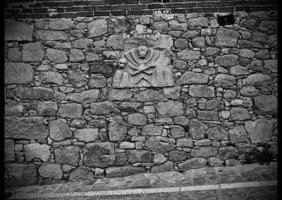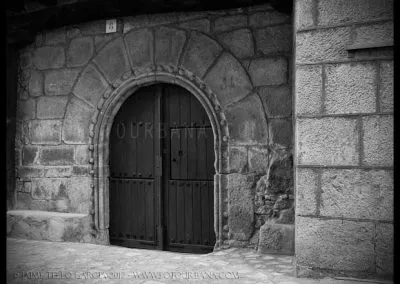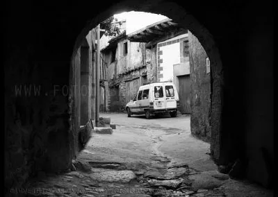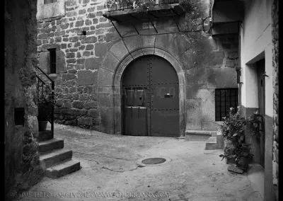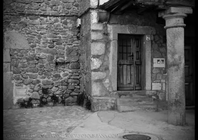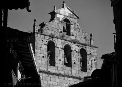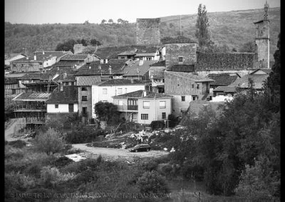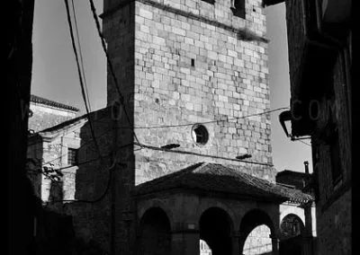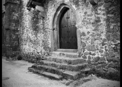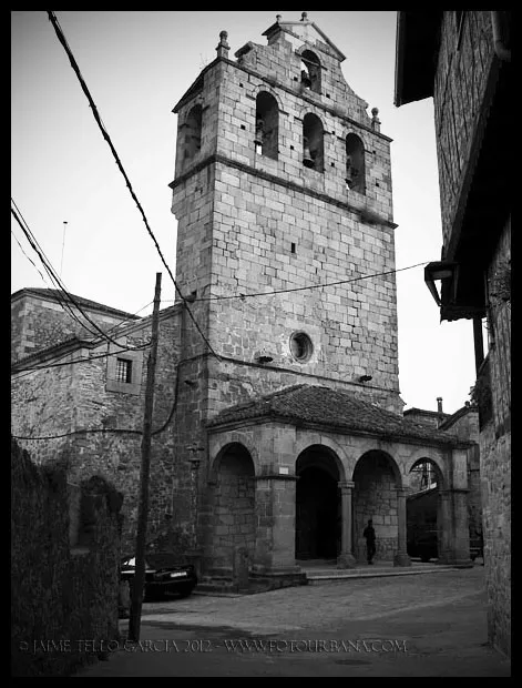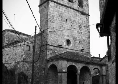 Perdido entre bosques y valles aparece, de forma discreta y muy integrado en el paisaje, el caserío de San Martín del Castañar, pueblo remoto y poco conocido de la comarca salmantina de Sierra de Francia y que sin embargo alberga un patrimonio fascinante. San Martín pareció surgir durante la repoblación de estas tierras reconquistadas y cristianizadas, en la que debieron establecerse gentes provenientes de Francia, de ahí la advocación al santo francés. Los primeros pobladores se ubicaron en una atalaya sobre el río Francia, y allí levantaron la primitiva aldea y la primera iglesia. Algún tiempo más tarde levantaron el magnífico castillo, el elemento más destacado del pueblo, que cuando yo visité el pueblo aún estaba sin remozar. Albergaba entonces el cementerio y una precaria plaza de toros, y parece haber sido transformado en los últimos años en un centro de interpretación sobre esta comarca que es Reserva de la Biosfera. El castillo, levantado en el siglo XV, fue palacio y cárcel y diversos avatares y el paso del tiempo lo fueron desmochando, hasta conservar tan sólo algunos bellos lienzos que son suficientes para remarcar su presencia. Al sur de la fortaleza aparece la Iglesia Parroquial de San Martín, iniciada en el siglo XIII, periodo del que conserva elementos mudéjares, y en continua transformación hasta que en el siglo XVIII se añadiera la Capilla Mayor y el cimborrio.