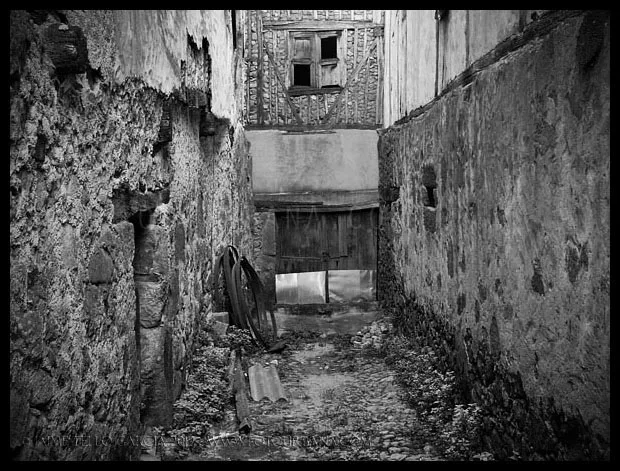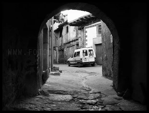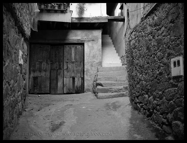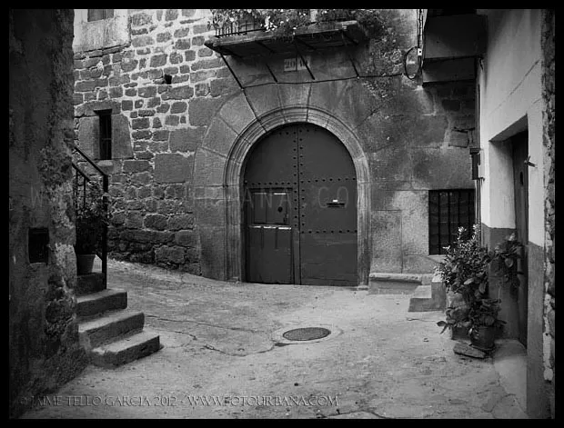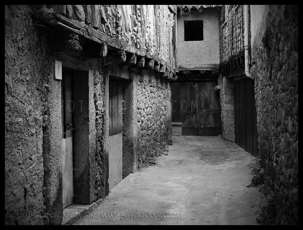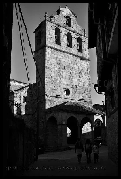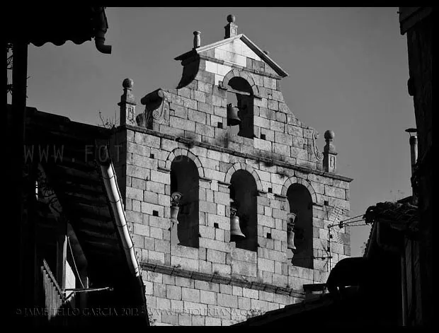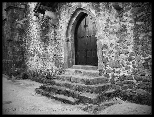Perdido entre bosques y valles aparece, de forma discreta y muy integrado en el paisaje, el caserío de San Martín del Castañar, pueblo remoto y poco conocido de la comarca salmantina de Sierra de Francia y que sin embargo alberga un patrimonio fascinante. San Martín pareció surgir durante la repoblación de estas tierras reconquistadas y cristianizadas, en la que debieron establecerse gentes provenientes de Francia, de ahí la advocación al santo francés. Los primeros pobladores se ubicaron en una atalaya sobre el río Francia, y allí levantaron la primitiva aldea y la primera iglesia. Algún tiempo más tarde levantaron el magnífico castillo, el elemento más destacado del pueblo, que cuando yo visité el pueblo aún estaba sin remozar. Albergaba entonces el cementerio y una precaria plaza de toros, y parece haber sido transformado en los últimos años en un centro de interpretación sobre esta comarca que es Reserva de la Biosfera. El castillo, levantado en el siglo XV, fue palacio y cárcel y diversos avatares y el paso del tiempo lo fueron desmochando, hasta conservar tan sólo algunos bellos lienzos que son suficientes para remarcar su presencia. Al sur de la fortaleza aparece la Iglesia Parroquial de San Martín, iniciada en el siglo XIII, periodo del que conserva elementos mudéjares, y en continua transformación hasta que en el siglo XVIII se añadiera la Capilla Mayor y el cimborrio.