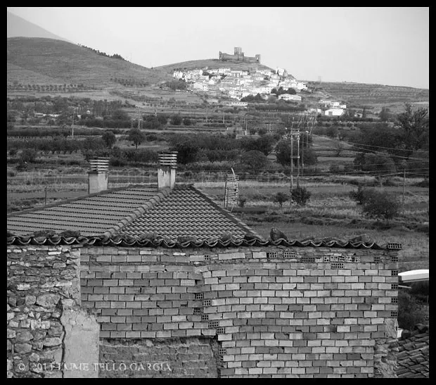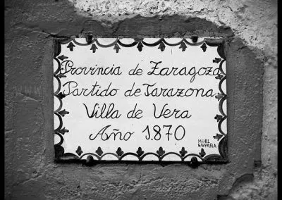 A la Vera del Moncayo me topo con Vera de Moncayo. El pueblo es grande y se ubica sobre un terreno relativamente llano en el valle del río Huecha. Vera contó con castillo, levantado en el siglo XIV y del que algunos restos quedan, y cuenta en su término con el célebre Monasterio de Veruela, que ha dado gran fama al lugar. Haciendo una búsqueda en internet, la información sobre Vera se centra casi exclusivamente en Veruela, y siendo este un monumento importante, hay vida más allá del cenobio. Vera de Moncayo es un pueblo bonito de caserío apretado y calles angostas, urbanismo típico del occidente zaragozano. Adosado a los restos de la antedicha fortaleza se alza la Iglesia de la Natividad, de traza renacentista y magnífica torre mudéjar y que quizá, pienso, hizo uso de las piedras del castillo para su construcción. De la Plaza de la Iglesia parte la Calle Mayor, que estructura el casco urbano y de la que parten un buen número de calles perpendiculares. El conjunto guarda una forma ovalada que remite a los viejos pueblos fortificados que abundaron en esta tierra aragonesa de profunda herencia medieval.