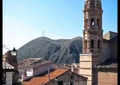 El sinuoso valle del Jiloca comunica Calatayud con Daroca, dos de los núcleos históricos más importantes de la provincia de Zaragoza. En sus márgenes, trepando por las paredes que flanquean el cauce, se levantan varios pueblos importantes que aprovecharon el desnivel para establecer su caserío al abrigo de las defensas que coronan sus cumbres. Villafeliche es uno de ellos, un pueblo bello y colorido rematado por la ruina de su viejo castillo, uno de los conjuntos urbanos más completos y variados del occidente zaragozano. El casco urbano, de grandes dimensiones, aún conserva la herencia morisca en su trama, con calles que caen hacia la fértil vega y callejones y recodos que trepan buscando la fortaleza. Una larga calle, la Calle Mayor, corre paralela al Jiloca y vertebra el pueblo. El Jiloca, que ha sido la fuente de vida de Villafeliche desde tiempos inmemoriales y cuya fuerza movió los molinos que dieron fama al lugar por la fabricación de pólvora. La visita a la vega y a la vieja estación de ferrocarril se hace obligatoria para conocer la verdadera dimensión de Villafeliche y disfrutar del perfil del pueblo y su castillo. De vuelta a sus calles, Villafeliche cuenta con un espacio urbano excepcional, la Plaza Mayor, una de las más bellas de toda la comarca, compendio de arquitectura popular desde la que poder disfrutar de la vista de la fortaleza y de sus casas grandes y bien conservadas en un entorno de gran belleza. En el otro extremo del casco está la plaza donde se ubica su ayuntamiento, de construcción antigua pero muy transformado, y sobre todo la Iglesia de San Miguel, gran nave barroca coronada por una bellísima torre mudéjar de ladrillo y azulejo levantada a finales del siglo XVI.