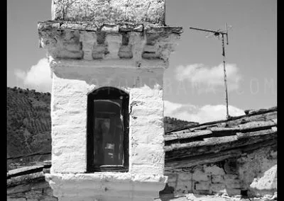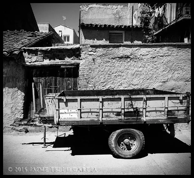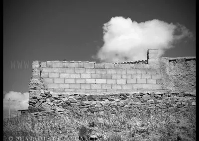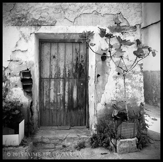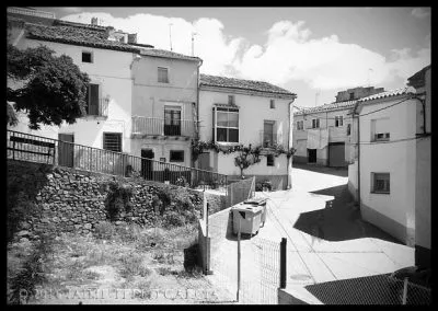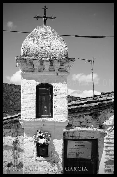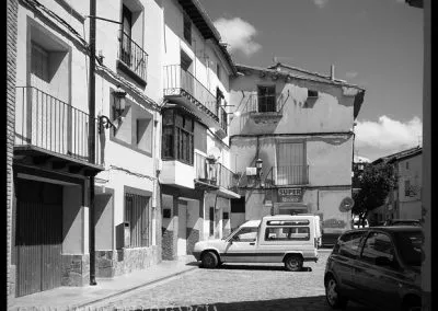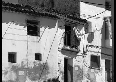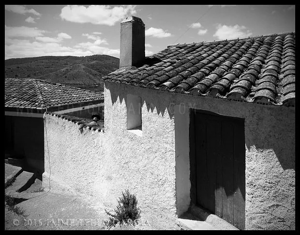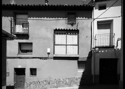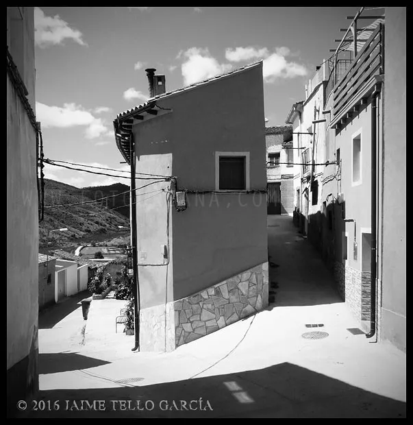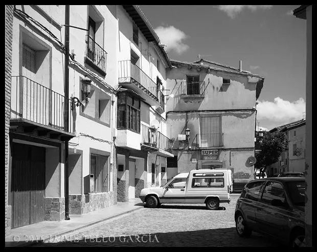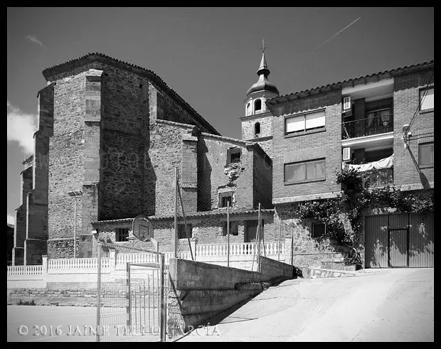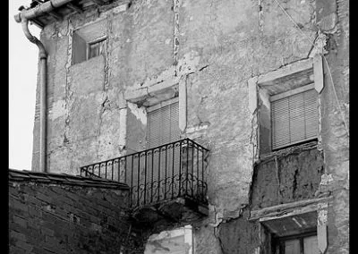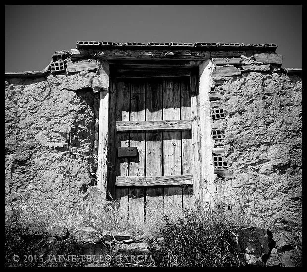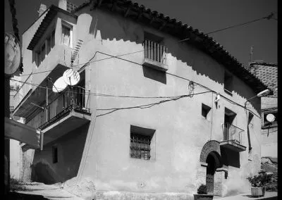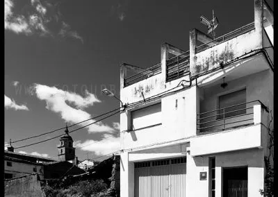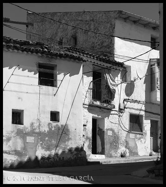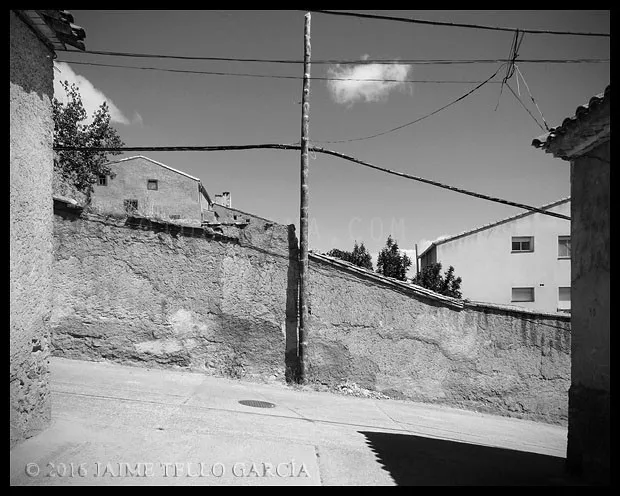 Villaluenga es una excepción en la tierra de Castillos que es el Valle del Manubles. Desconozco si contó con fortaleza o no, lo que parece es que hoy día no queda rastro de ella. Además, al asentarse Villalengua sobre una loma suave, también es singular en la comarca por su morfología: un casco urbano compacto y bien trazado y poco resguardado, cuya forma se asemeja a un círculo, al contrato que Moros, Bijuesca o Torrijo que son fantásticos laberintos urbanos. Por ello el paseo por el pueblo se hace cómodo y agradecido, con suaves pendientes y calles más o menos largas. Lo que sin embargo sí encuentro en Villaluenga al igual que en el resto del valle es el mismo trágico aunque muy pintoresco abandono que es la seña de identidad de muchos pueblos de esta comarca de Calatayud, de esta provincia de Zaragoza y de este Aragón que se sigue despoblando año tras año. Y aún así, es este uno de los pueblos más poblados y con el casco urbano más amplio de todo el Valle del Manubles, con cerca de 400 vecinos. Cuenta con algunos comercios y bares, lo que no es poco por estos lares, si me permiten la rima. En el centro de abre la bella Plaza Mayor a la que asoman los dos edificios más importantes: el ayuntamiento, y tras él, el campanario de la Iglesia de la Asunción, del siglo XVI, cuya elaborada portada se esconde bajo los arcos del edificio consistorial. El resto del pueblo es una sucesión de casas, normalmente de dos alturas y sobrado, algunas renovadas y otras caídas, pero que en general ponen de manifiesto el deseo de los hijos del pueblo por mantener viva su presencia en Villalengua renovando el caserío. Además, el entorno natural es excepcional, con paisajes que se abren y se tornan amables hacia el sur y se vuelven agrestes, casi encañonados hacia el norte por Torrijo.